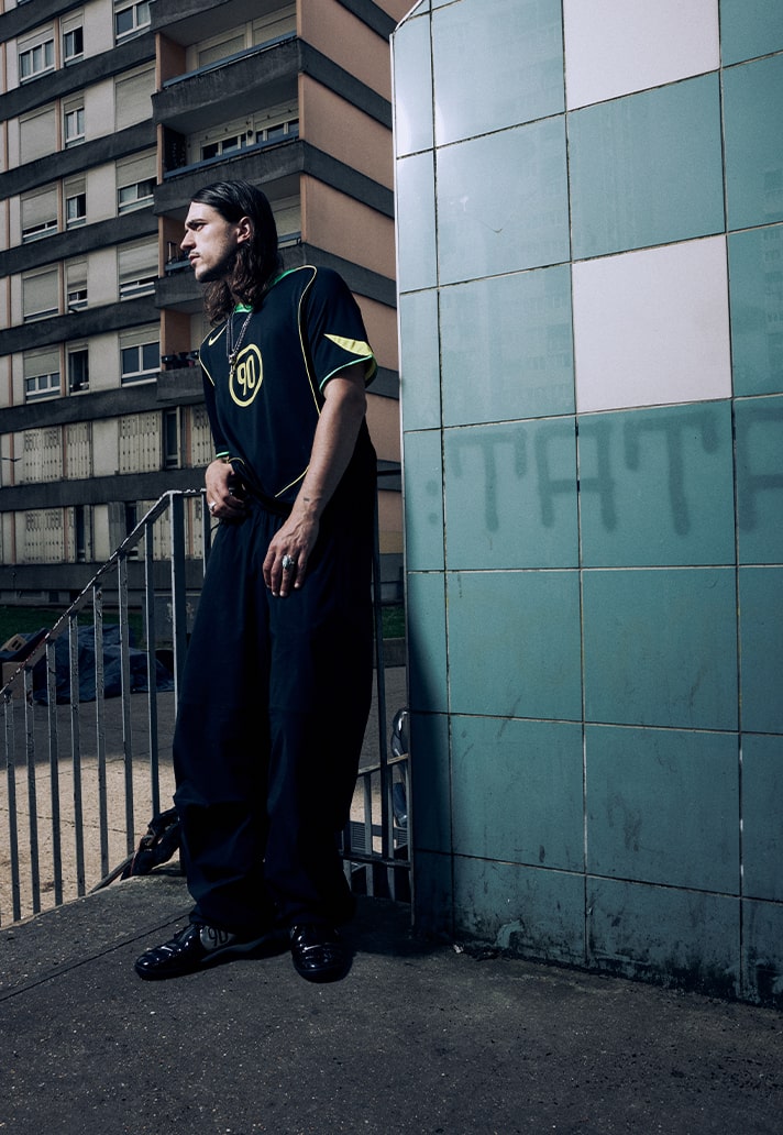 Paris is a city that sets the tempo for how the world dresses. It’s a place where elegance and grit, luxury and banlieue energy, co-exist on the same streets and bleed into each other’s rhythm. Having come of age in the Total 90 era, Louis Castex – a figure that embodies that crossover – carries with him the memory of when football boots and campaign films shaped an entire generation. Now rooted in Paris, he’s carved his space in the fashion scene, witnessing first-hand how the game has jumped from pitches to runways, from cage football to couture. His perspective is one of lived experience: from the suburbs that influence Paris, to a capital that influences the world.
