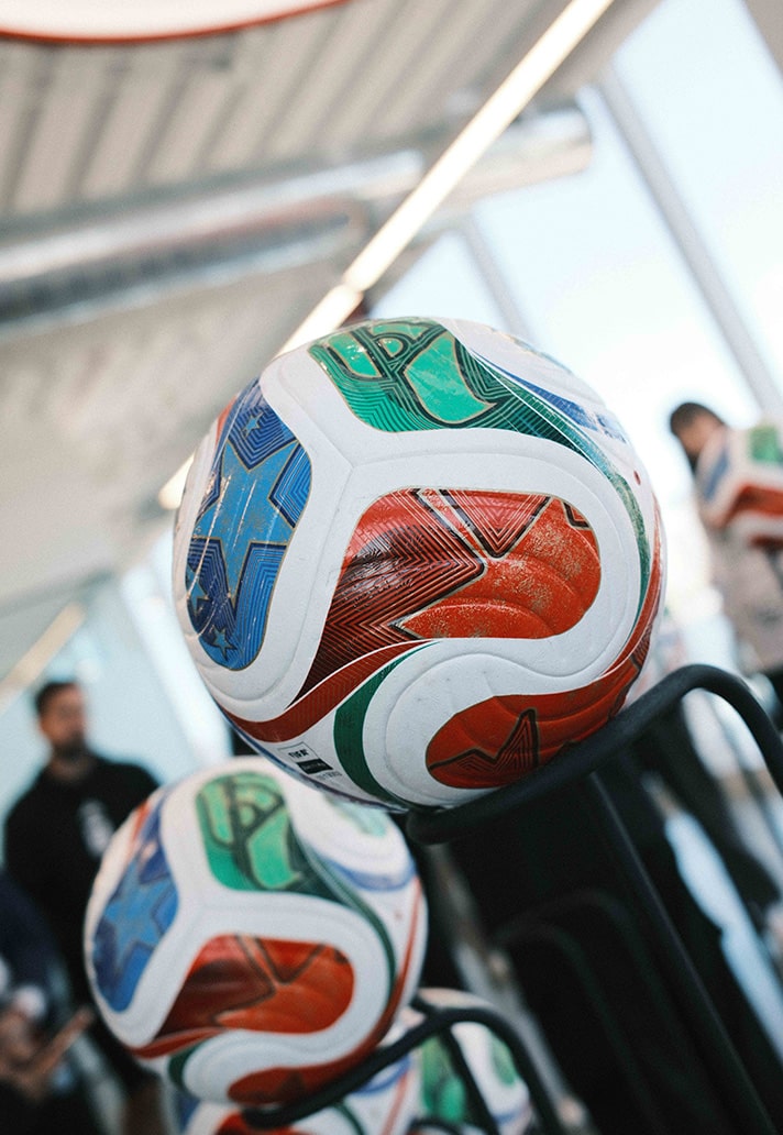 Absolutely. The Trionda features a new four-panel construction, and each panel has three arms. Each arm represents one of the host nations. We chose blue for the U.S., green for Mexico, and red for Canada. All three colours come together at the centre of each panel in the shape of a triangle, symbolising unity and connection. We didn’t want the story to live only in colour, though. We also included iconography that’s instantly recognisable to fans around the world — stars for the U.S., the maple leaf for Canada, and the eagle for Mexico. You can see these not only in the visual blocking but also in the texture of the ball. When you look closely, the tiny stars, leaves, and eagles are embossed into the surface, providing both symbolic meaning and functional grip. It’s a subtle detail, but it adds a lot of depth.