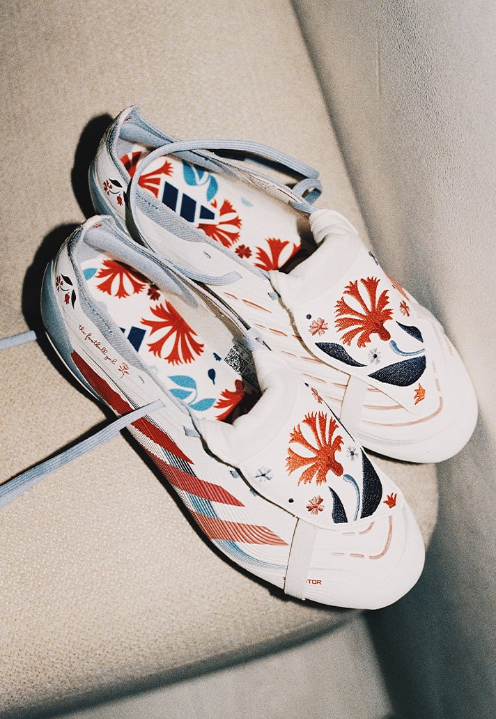 Now, that same storytelling sits on football’s most iconic canvas: the adidas Predator. For her, this collaboration isn’t just a design project; it’s a full-circle moment — from discovering football through a TV screen during the war in Iraq to redefining one of the sport’s most storied silhouettes.