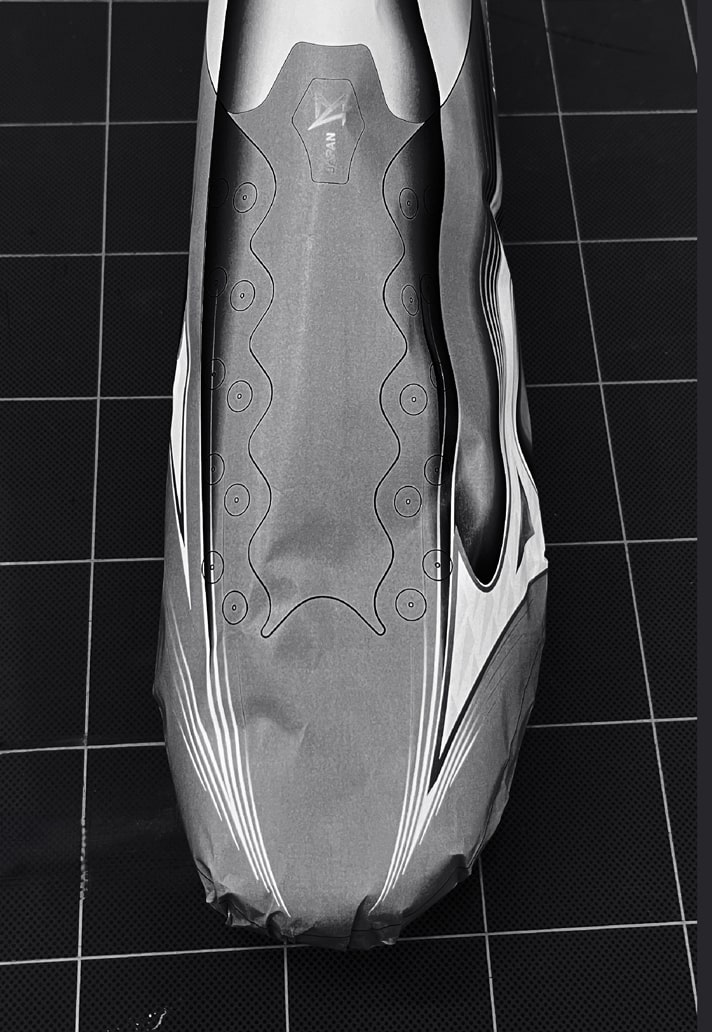 Everything starts with the last. In 2020, when we updated the MORELIA II JAPAN, we developed the Engineered Fit Last to better match the modern footballer’s foot shape. That last is primarily used in flat-sole models like MORELIA II. For boots with external heel counters, such as MORELIA NEO and MIZUNO ALPHA, we apply the Engineered Fit Last NEO. With ALPHA III, we focused on designing an upper pattern that could fully express the potential of this last.