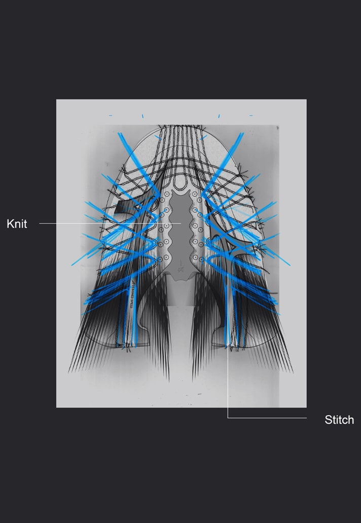 Mizuno Football has always been a performance-fitting brand. For every boot we create, material selection is driven by our pursuit of the ideal fit. With ALPHA III, we challenged ourselves by introducing a full-knit upper for the first time in this silo. In doing so, we wanted to prove that Mizuno can deliver its signature fit regardless of material. Our craftsmanship is central to that message, particularly through the original stitch pattern, which is unique to Mizuno. These stitches control stretch in the knit and ensure even tension during lasting. Materials may evolve, but craftsmanship remains at the heart of our identity.