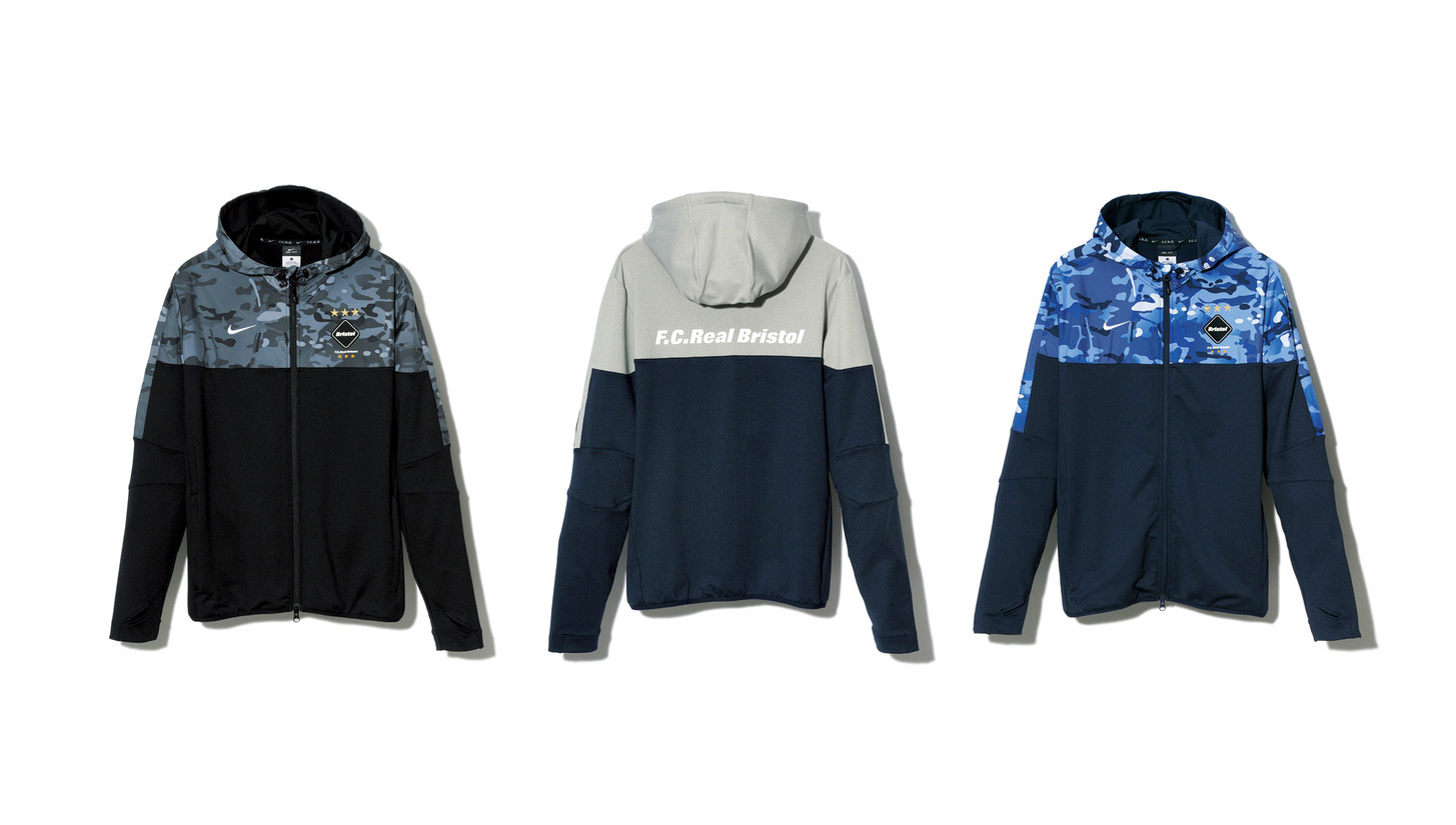 With heavy focus on the innovation, the fresh pieces from F.C.R.B take the latest clothing developments from Nike and blend them in beautifully with the on point eye of fashion designer Kiyonaga. A well executed approach, the latest collection is diverse - featuring a selection of smart camouflage laden dri-knit jackets, a mixture of tees along with shorts to match.