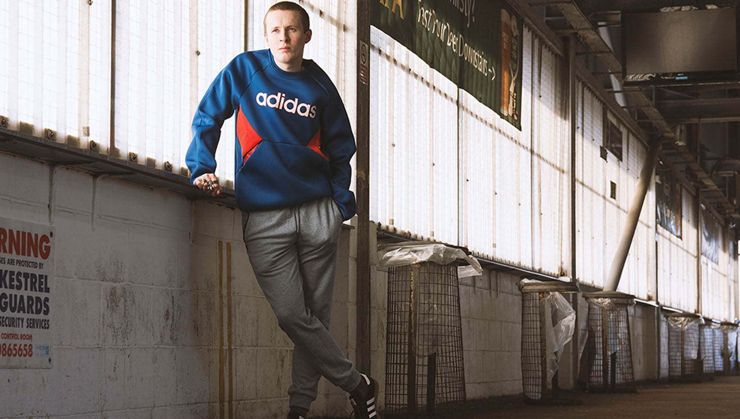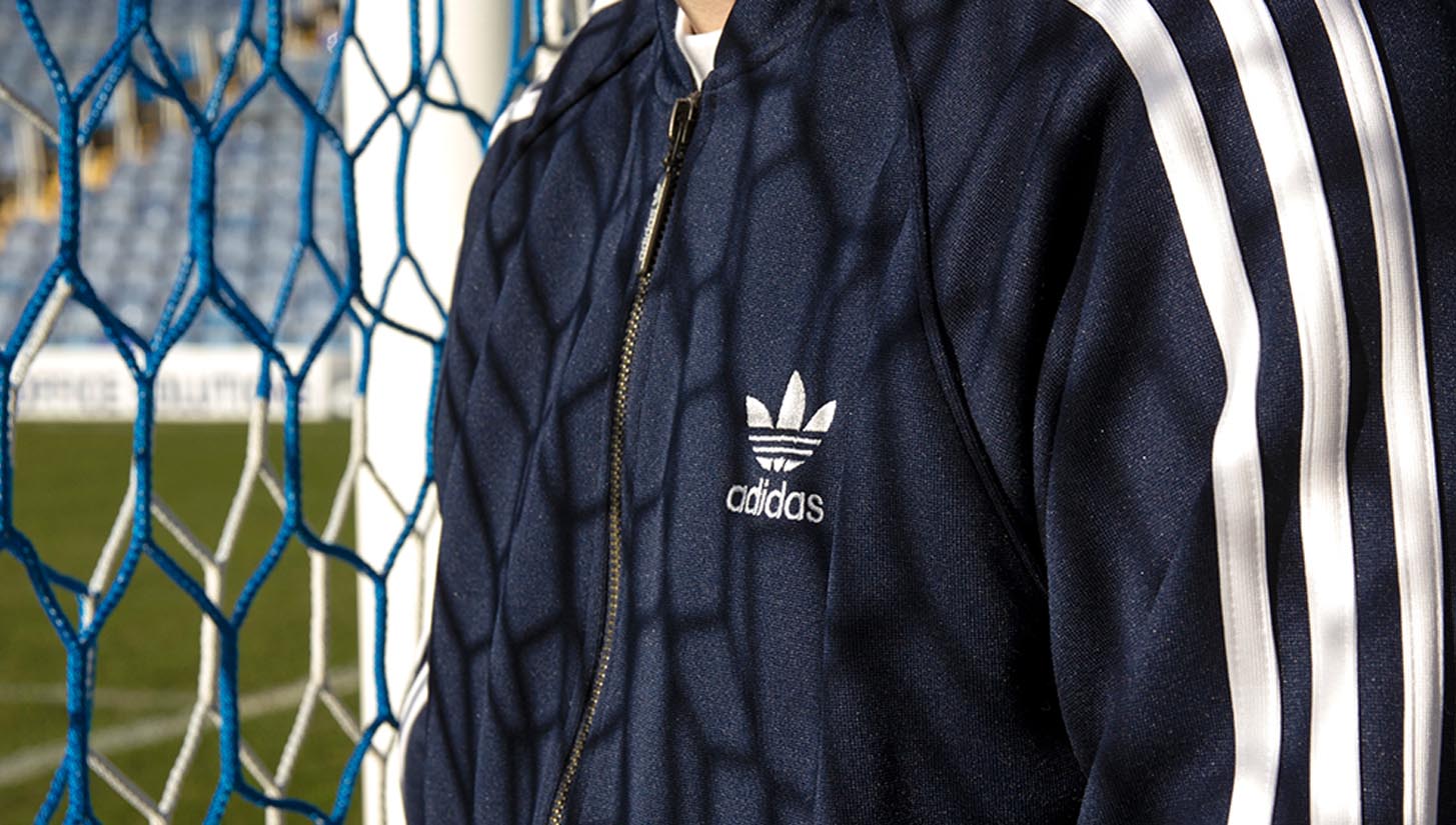 The beauty of the adidas Originals apparel on show is its ability to easily exchange between backdrops. Whether it's the pub or pitchside, or at a gig or in the studio, there's a culture clash of goodness on show. Classic track jackets that relentlessly never age and t-shirts that only mature with time, these guys have shot it well.