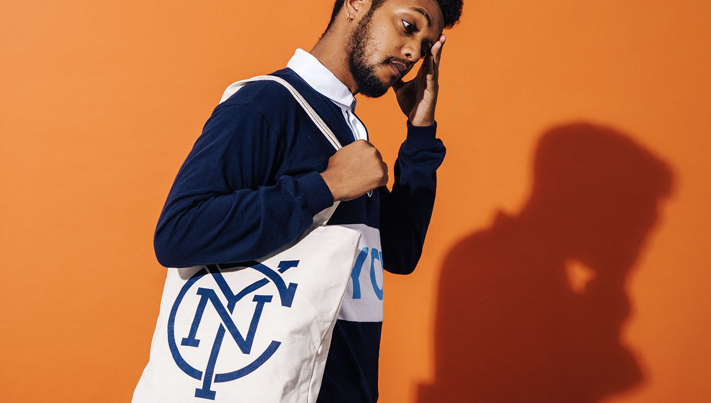 In view are two pieces from the product line that are on point as we hit up the Autumn/Winter season. Spritely for summer still, this Rugby shirt, emblazoned with 'NYCFC' is paired up with a tote bag that'll 100% make you actually want to go to the veg isle and back again. Better yet, bung your boots in their and you're laughing all the way to coolsville.