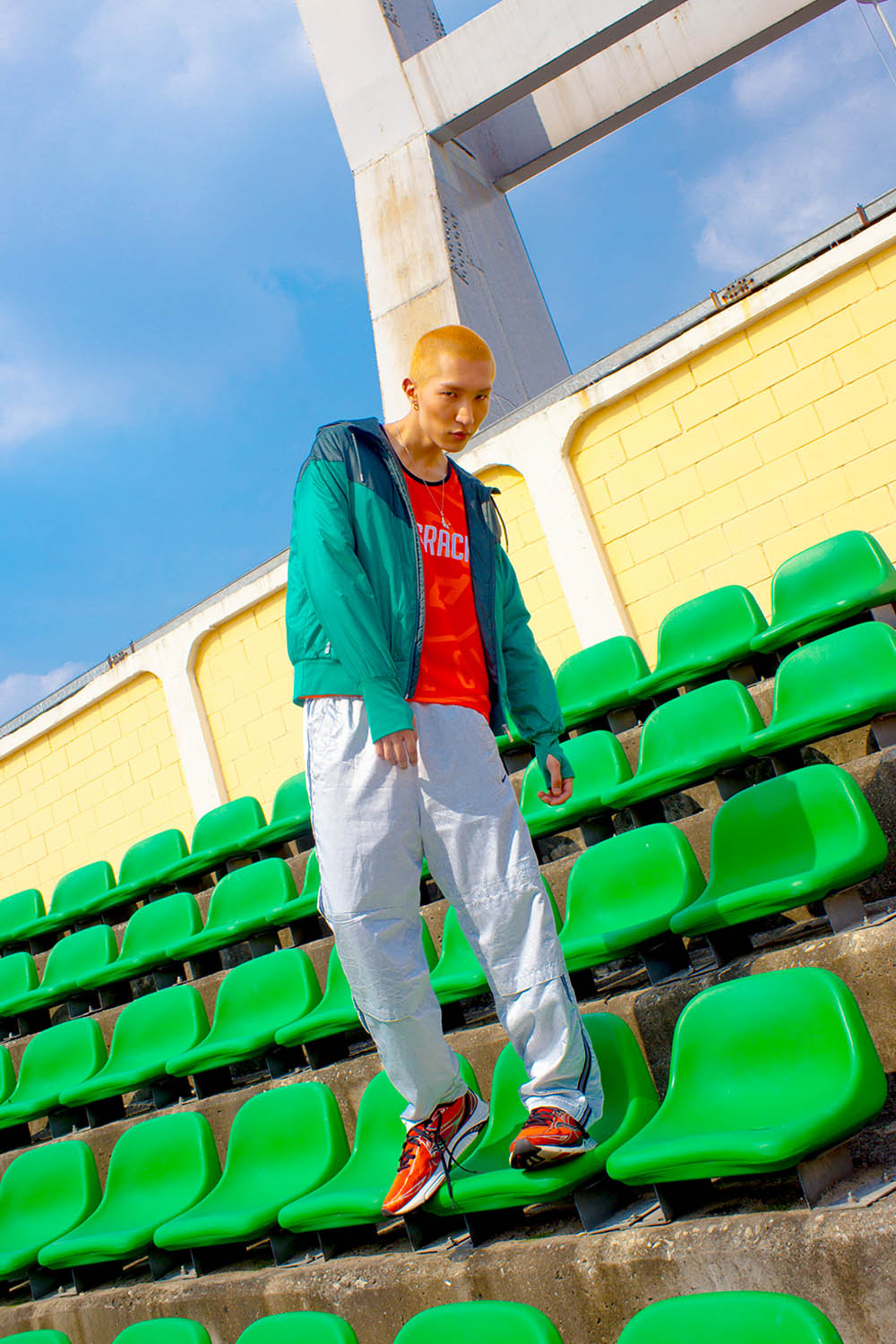 Shot by Seoul-based photographer Minwoo yoo, the brand landed at the most iconic venue for Korean football history with the aspirations to represent their identity and the place they champion with their style. Strong colours and independent edge, the Nivelcrack approach to the game is a fresh one and this lookbook explores the foundations of creativity they have built their name on.