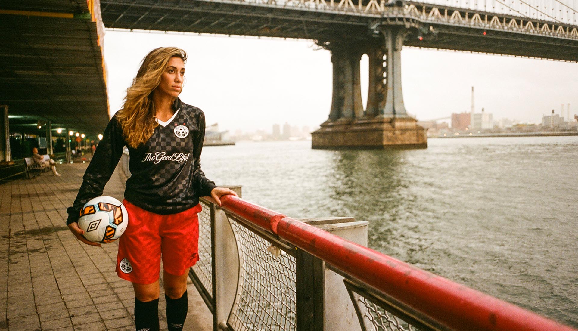 The club has gained notoriety through years of competitive play with an unparalleled devotion to style. Although pervasive cup winners, the club is as close knit off the pitch as on, converging weekly for "Family Dinner" at the firm's clubhouse Sweet Chick L.E.S. For the launch of TheGoodLife! FC's new kit with Umbro, club co-founder and veteran photographer Craig Wetherby shot members of the team exclusively on film in several strong NYC locations.