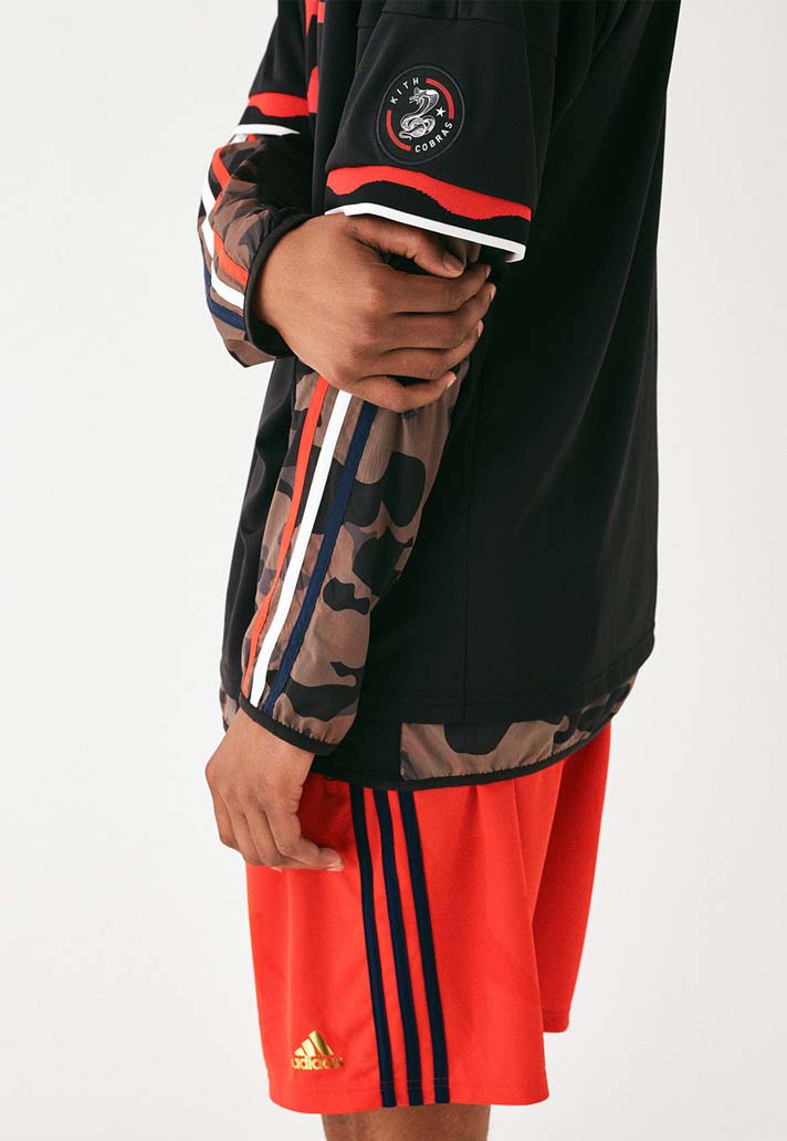 Apparel includes on-pitch home-and-away kits for all 3 clubs, including goalkeeper jerseys and pants. Off-pitch warm-up gear includes premium tracksuits, windbreakers and windpants, one-piece flightsuits, and sideline polos. Accessories add dimension to the assortment and are comprised of scarves, cross-body bags, and socks. Footwear is the final element, as Kith redesigns the ACE 16+ Purecontrol UltraBOOST & COPA Mundial 18 UltraBOOST.