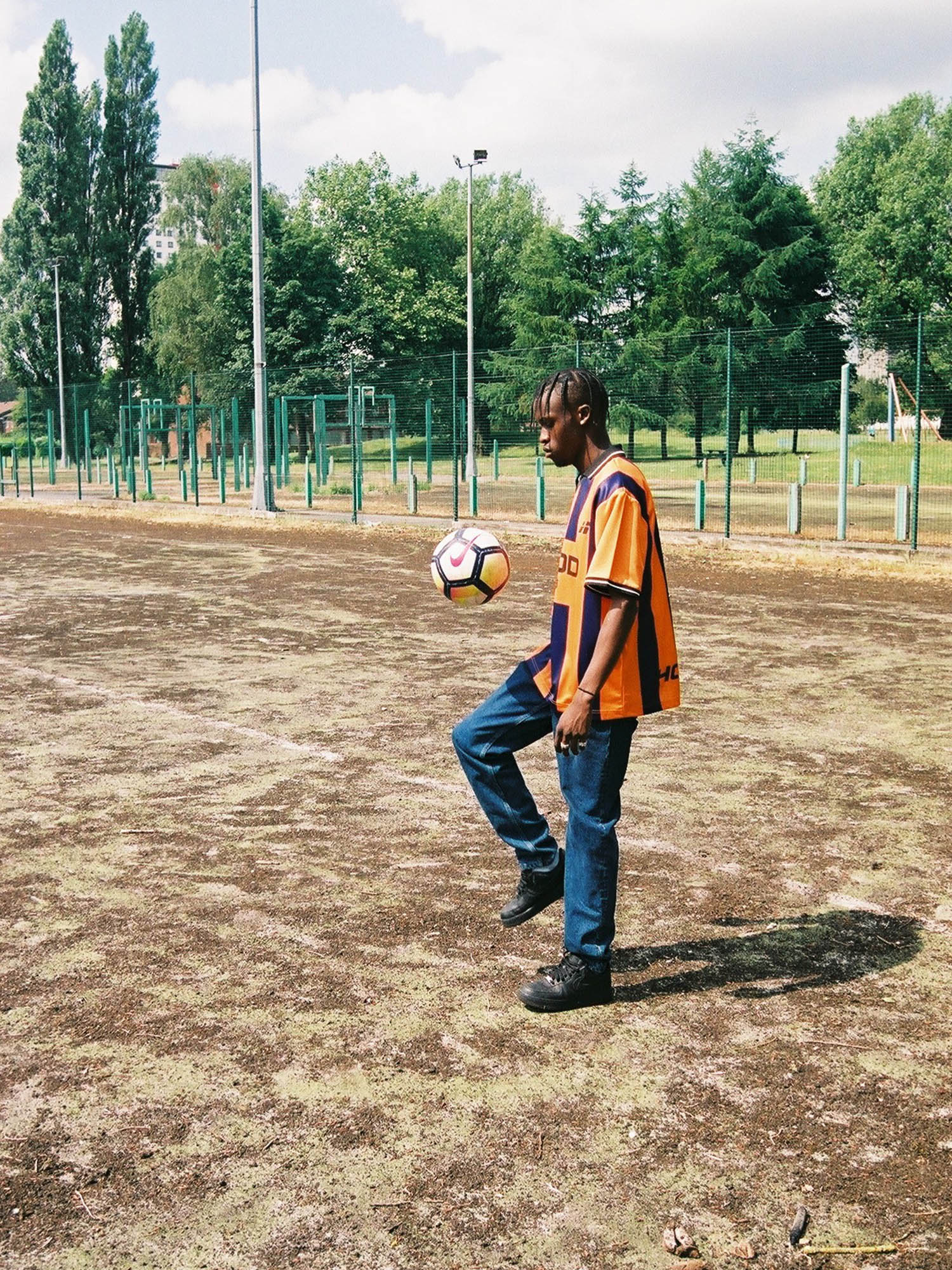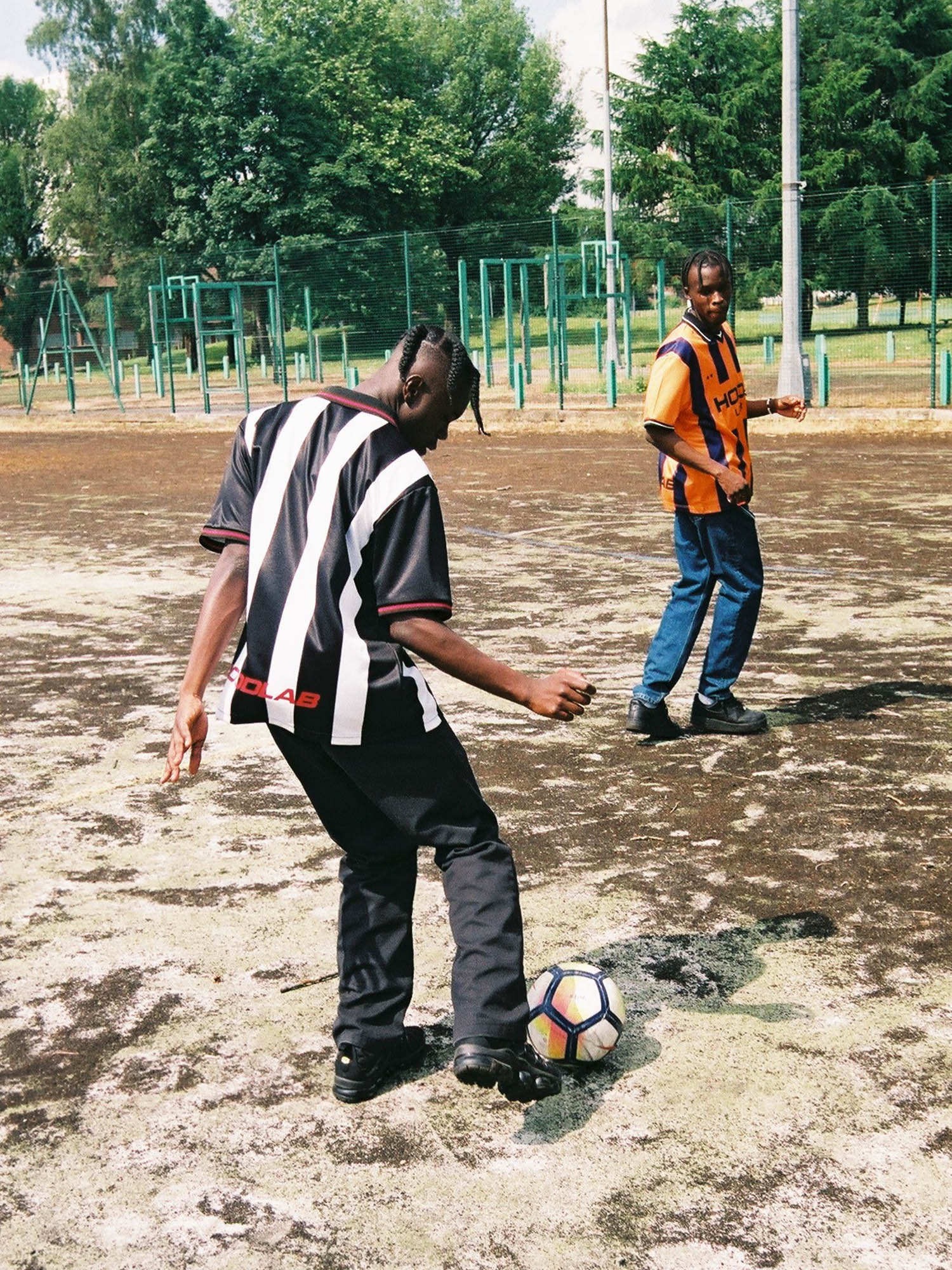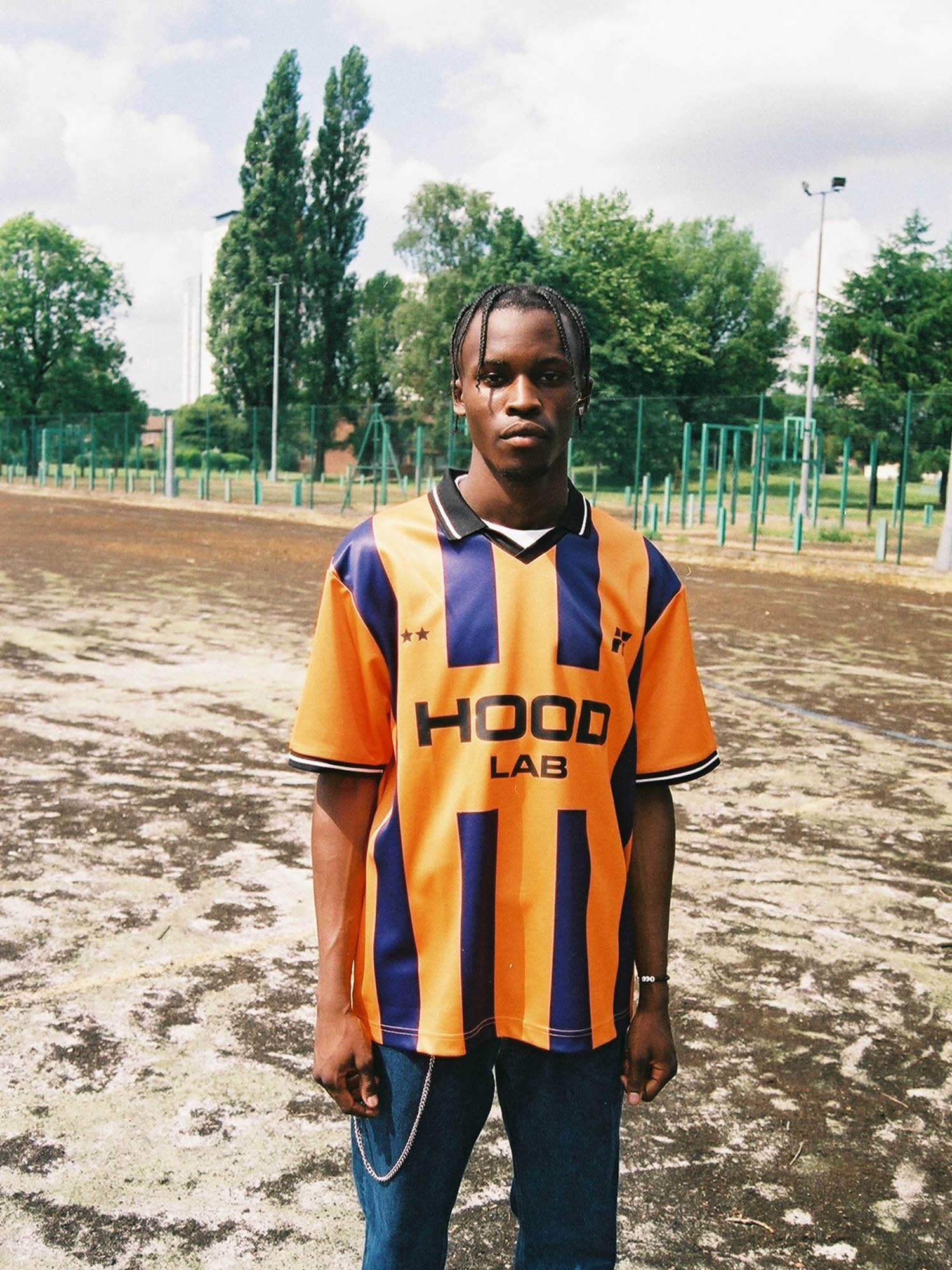 Comprising of two jerseys, they've each been given their own names; 'NORTH SIDE' is a black and white design while 'SOUTH SIDE' is orange and purple. Like '90s heroes in their own league, the jerseys work with an oversized lifestyle edge. Shot by Terrence Sambo, this lookbook is on point, serving as fresh food for a game where football and fashion meet.