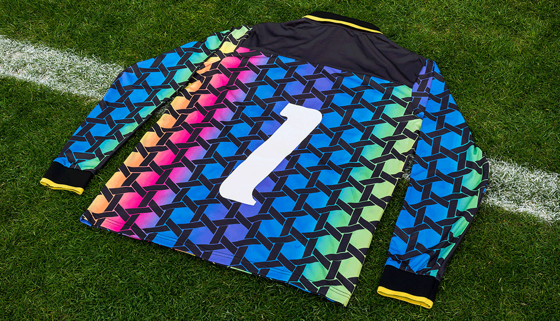 Picking apart each piece of the collection the reworked jersey features yellow details on the collar and sleeves and hummel branding on the front. A printed DBU logo is featured on the chest while front and centre as well as the reverse is the number '1'.