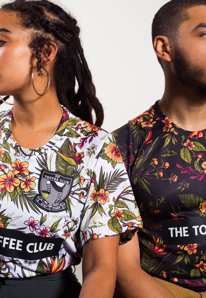 Further establishing themselves as the ultimate footballing watering hole, the Toffee Club build up their already impressively bespoke merchandise collection by introducing two graphic printed football jerseys. Floral prints adorn both the black and white shirts as the pub ride the hype and add more pace to the merging worlds of fashion and football.