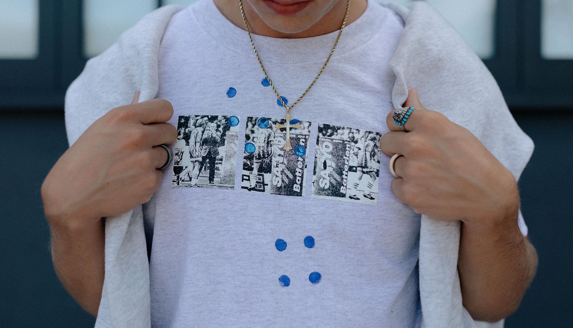 Painting a limited run of 50 t-shirts by foot, it's with a classic pair of boots that the creatives behind Tens Club stepped over a series of stills from that famed incident that happened in 1997. The tees contain a black and white sequence of Klinsmann's booted moment and the stud marks serve as a timely reminder as to how the event unfolded.