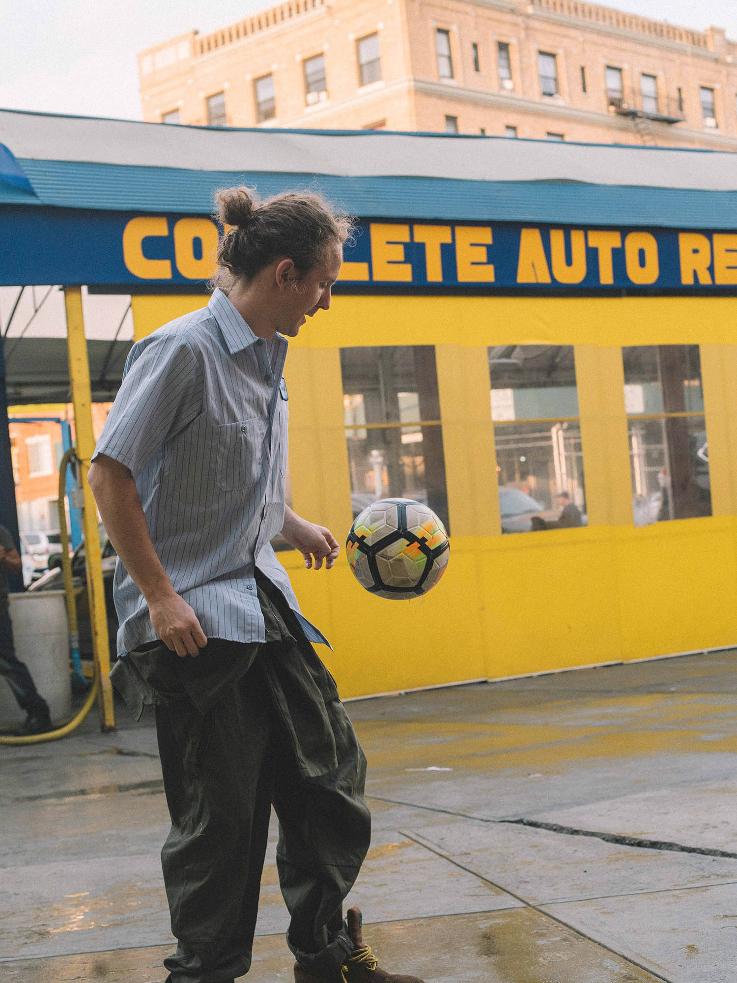 Modelled by Colm lifestyle brand KidSuper over a KidSuper jumpsuit, the photos were taken at a mechanics in South Williamsburg, New York City.