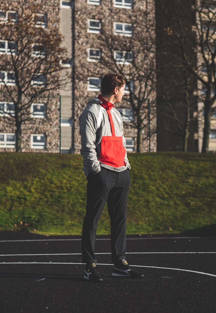 Taking cues from the 80s football fan’s iconic outfit, the Anorak comes in a predominantly grey nylon shell with a contrasting block of red that runs from the collar down to the kangaroo pocket. It's a half-zip pullover and features a tonal pack-away adjustable hood, Kangaroo zip pocket with double side entry zip pockets, and a large side zip on the right side. In short, you want one. Us too.