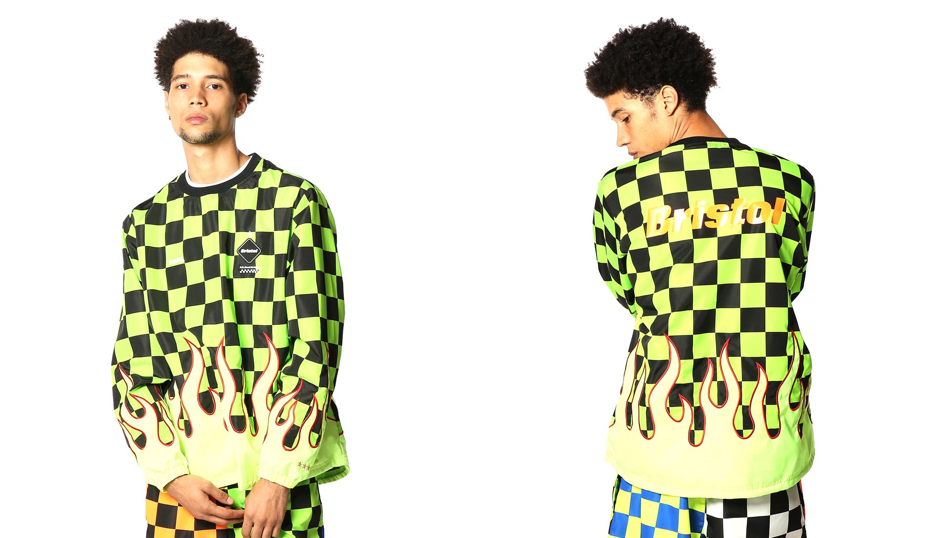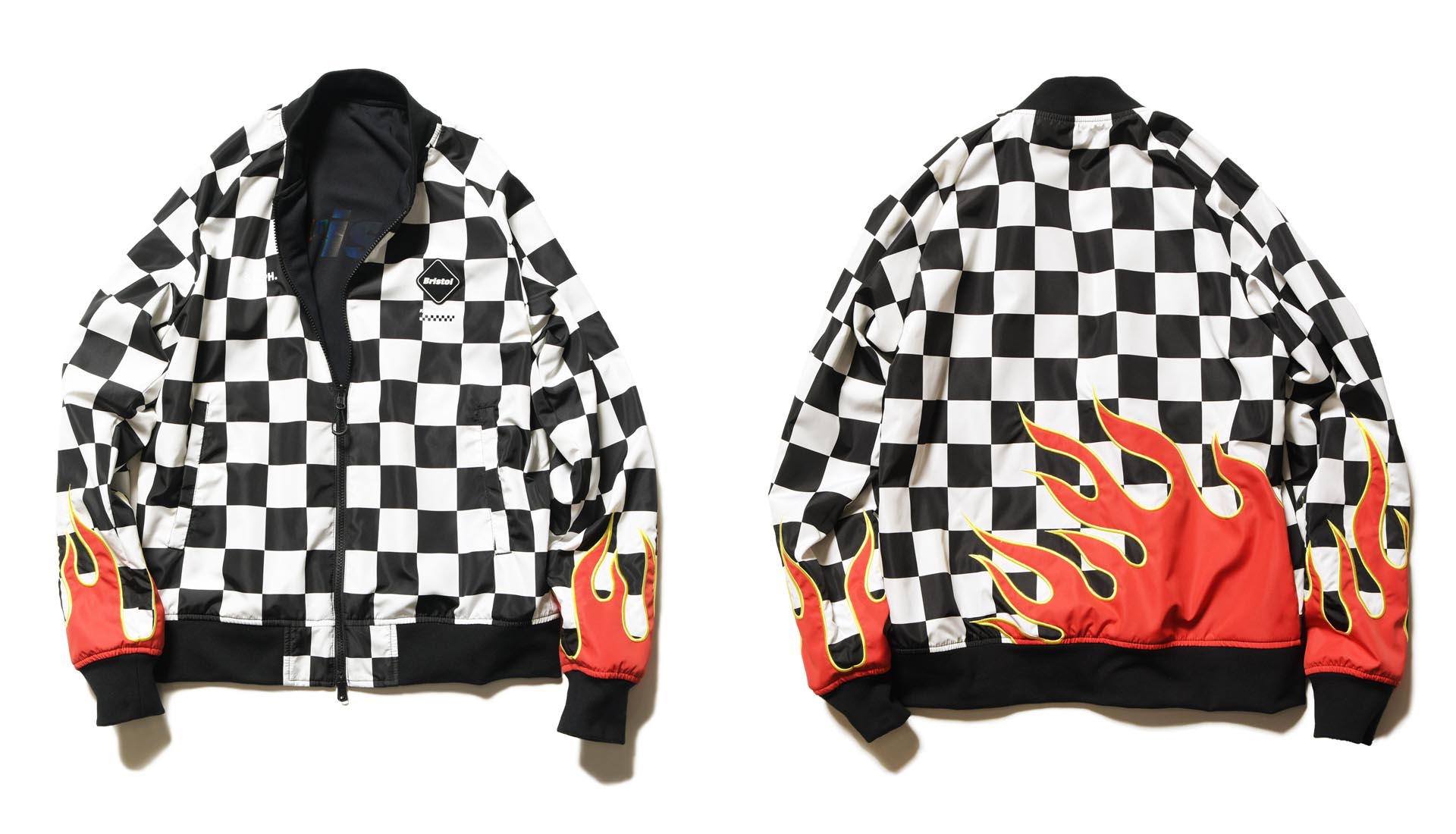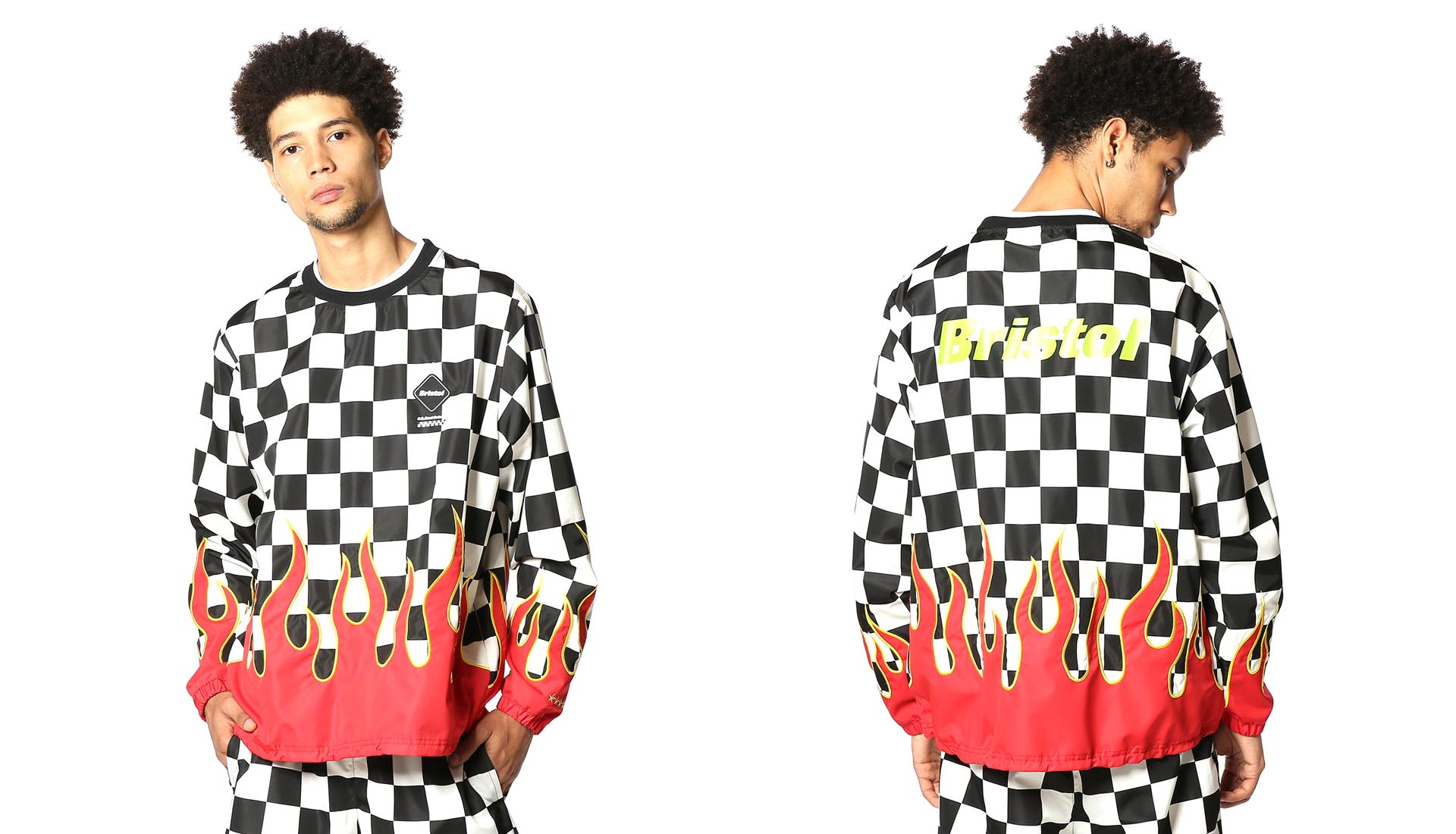 Checkered flags and modified FCRB branding in NASCAR form dominate the collection as flames throw themselves across key pieces throughout the SS19 drop. The vast series is once again fronted by F.C. Real Bristol's trademark mannequin-esque imagery, which plays upon their fictitious status.
