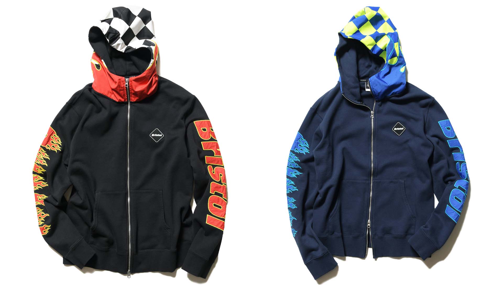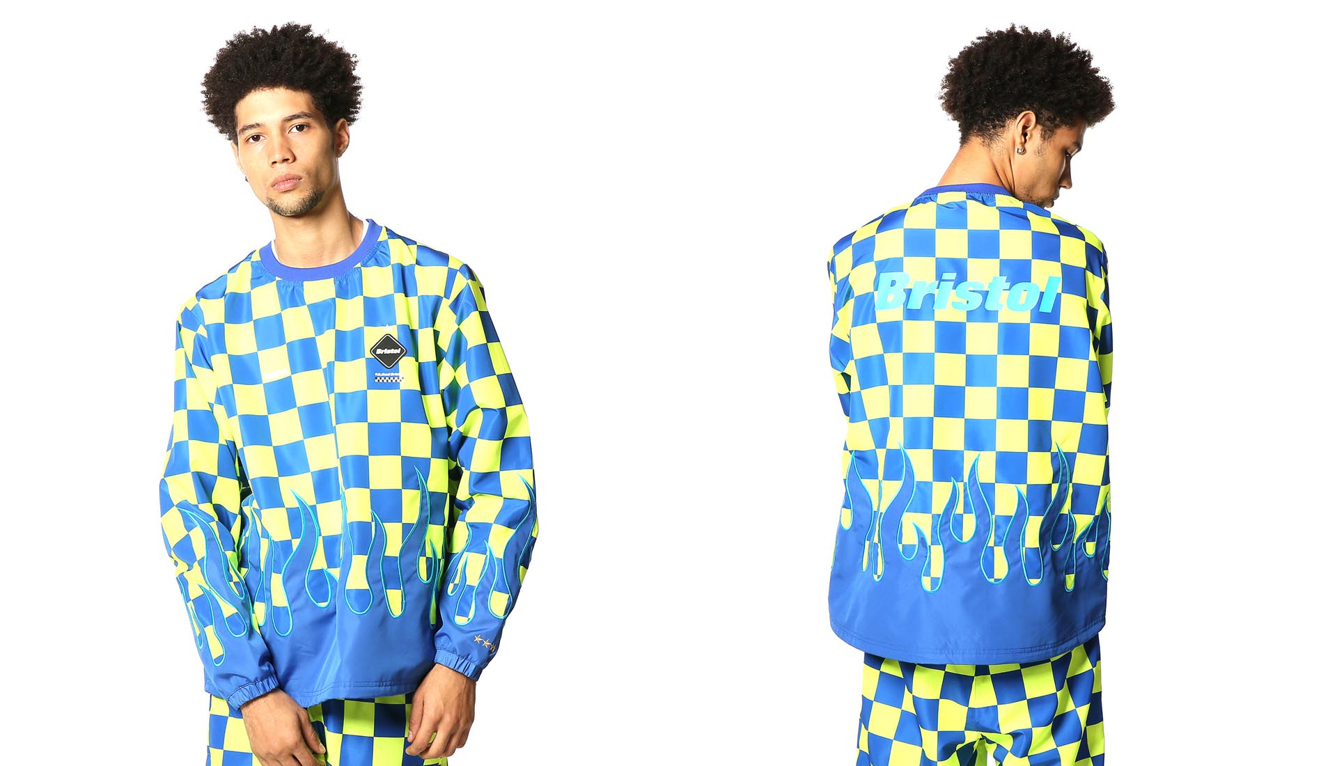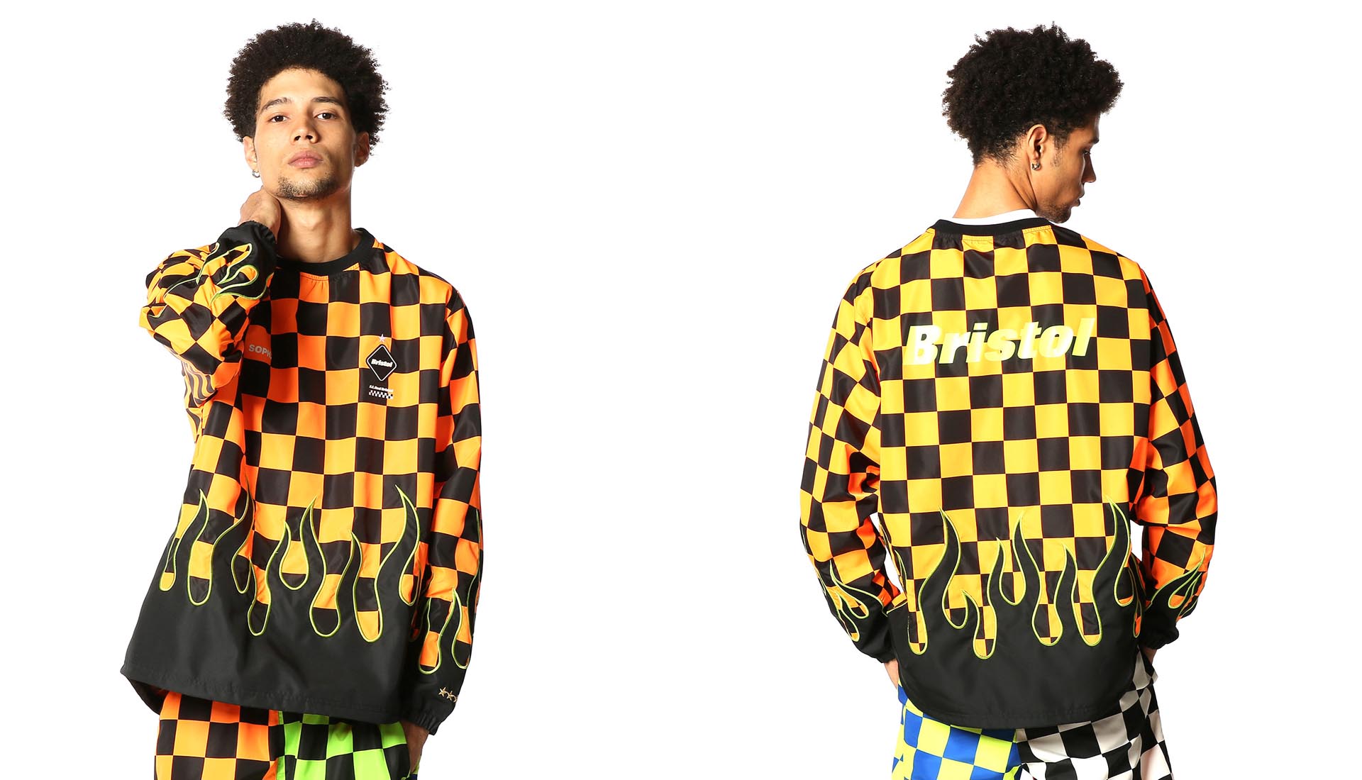 Checkered flags and modified FCRB branding in NASCAR form dominate the collection as flames throw themselves across key pieces throughout the SS19 drop. The vast series is once again fronted by F.C. Real Bristol's trademark mannequin-esque imagery, which plays upon their fictitious status.