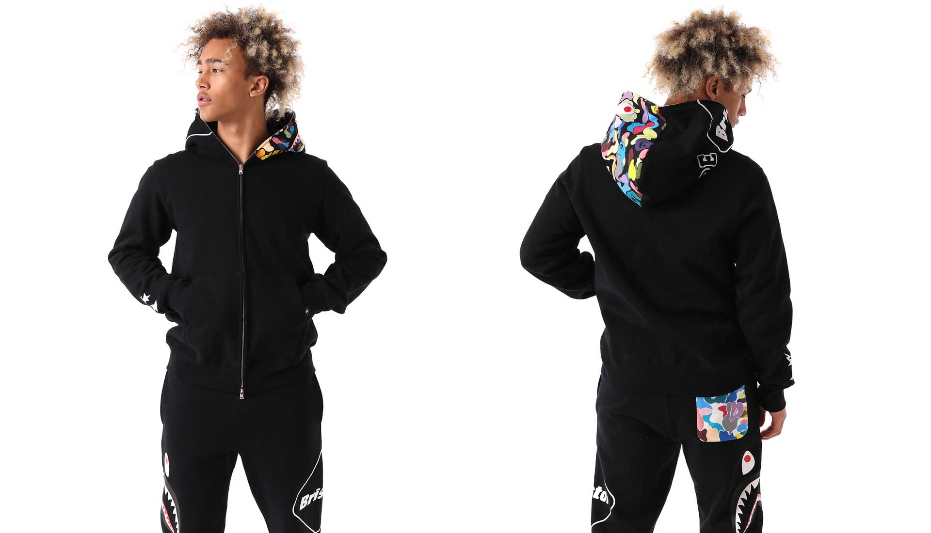 The link up will drop as one of the most anticipated streetwear collaborations of Spring/Summer 2019, and arrives with distinctive football inspiration. The commemorable collection is based on football supporters’ wear which features the essence of football culture by F.C.Real Bristol, and is boldly fused with iconic BAPE motifs such as the "BAPE Camo" and "Shark" series. There's a mutual respect shared between BAPE and F.C.Real Bristol for creating various movements in streetwear and this drop is a celebration of that.