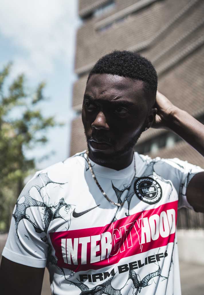 Only 60 shirts have been produced – each packaged with woven pouches and individually numbered – lending the design a special feeling of exclusivity. Shot in the streets, the series cuts a strong look showing the shirt off in its natural setting. The bespoke hand designed jersey features the front sponsor logo and back number in screen print along with a woven SoccerBible x Interhood crest.