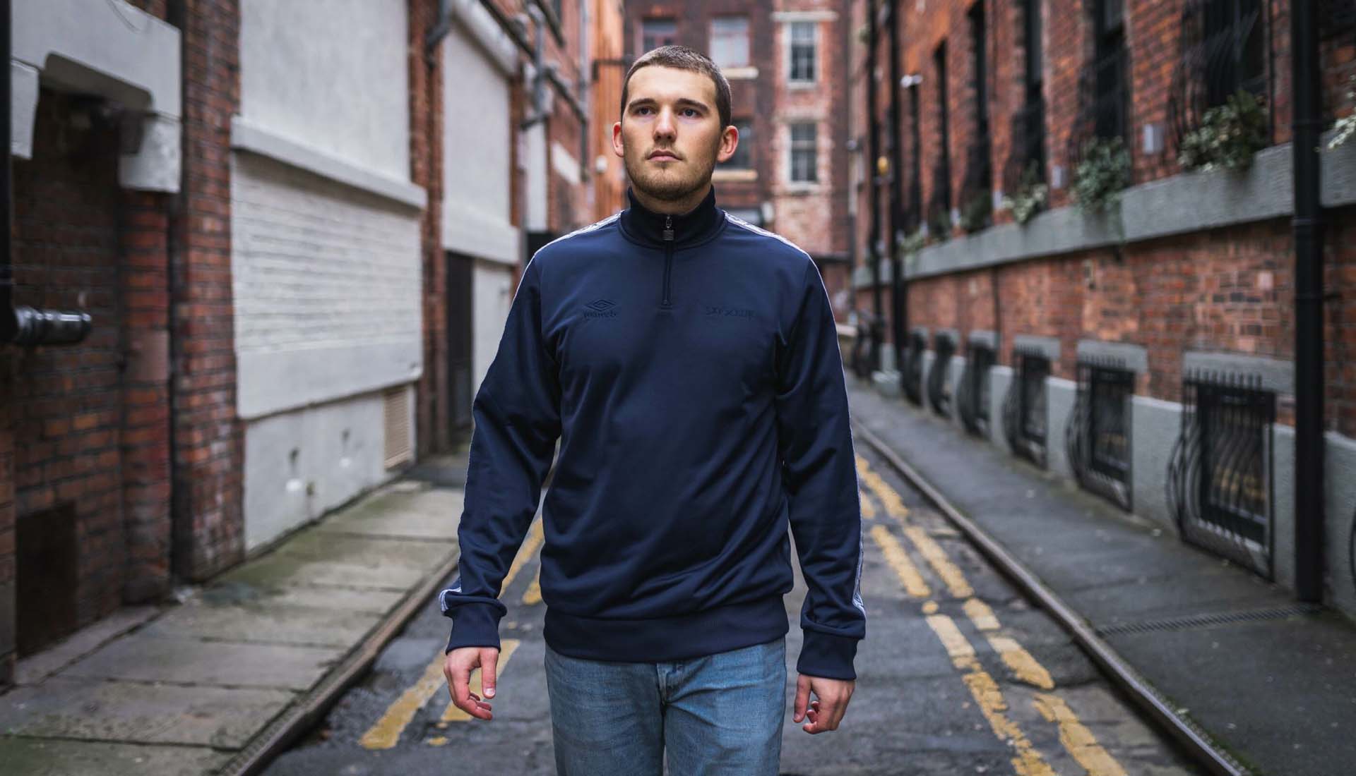 The shirt is joined by the quarter-zip top, which pays homage to the spirit of the terraces. The same Umbro x Sapeur banding again runs down the length of the arms, with the Umbro and Sapeur branding taking their places on the right and left of the chest respectively. Sapeur’s slogan “One Step Beyond” is then embroidered on the rear, at the base of the neck for a nice sign off.