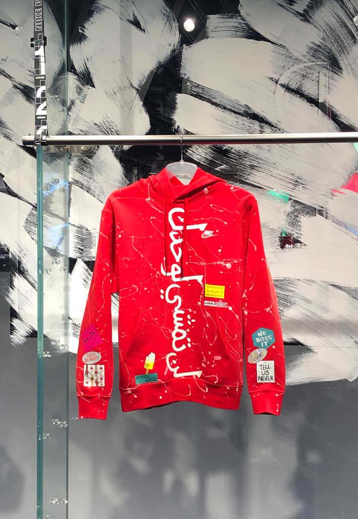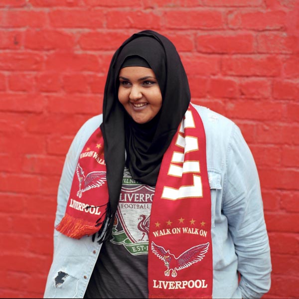 The limited Merseyside-red hoodies that Nadia created reflects her values as a designer. Inspired by diversity, she creates work that challenges stereotypes of Muslim women, while defying expectations of what a football fan looks like – an outlook that enriches the game, off and on the pitch. With “Tell Us Never” on the front and “YNWA” on the back, available in English and Arabic, the hoodie is Liverpool (and Nadia) through and through.