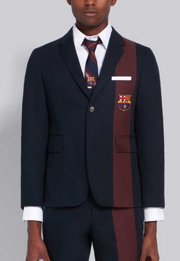 Teased last week, the new Thom Browne x Barcelona capsule collection has now been revealed in full, and it has been inspired by the Catalan club to raise money for the Barca Foundation.