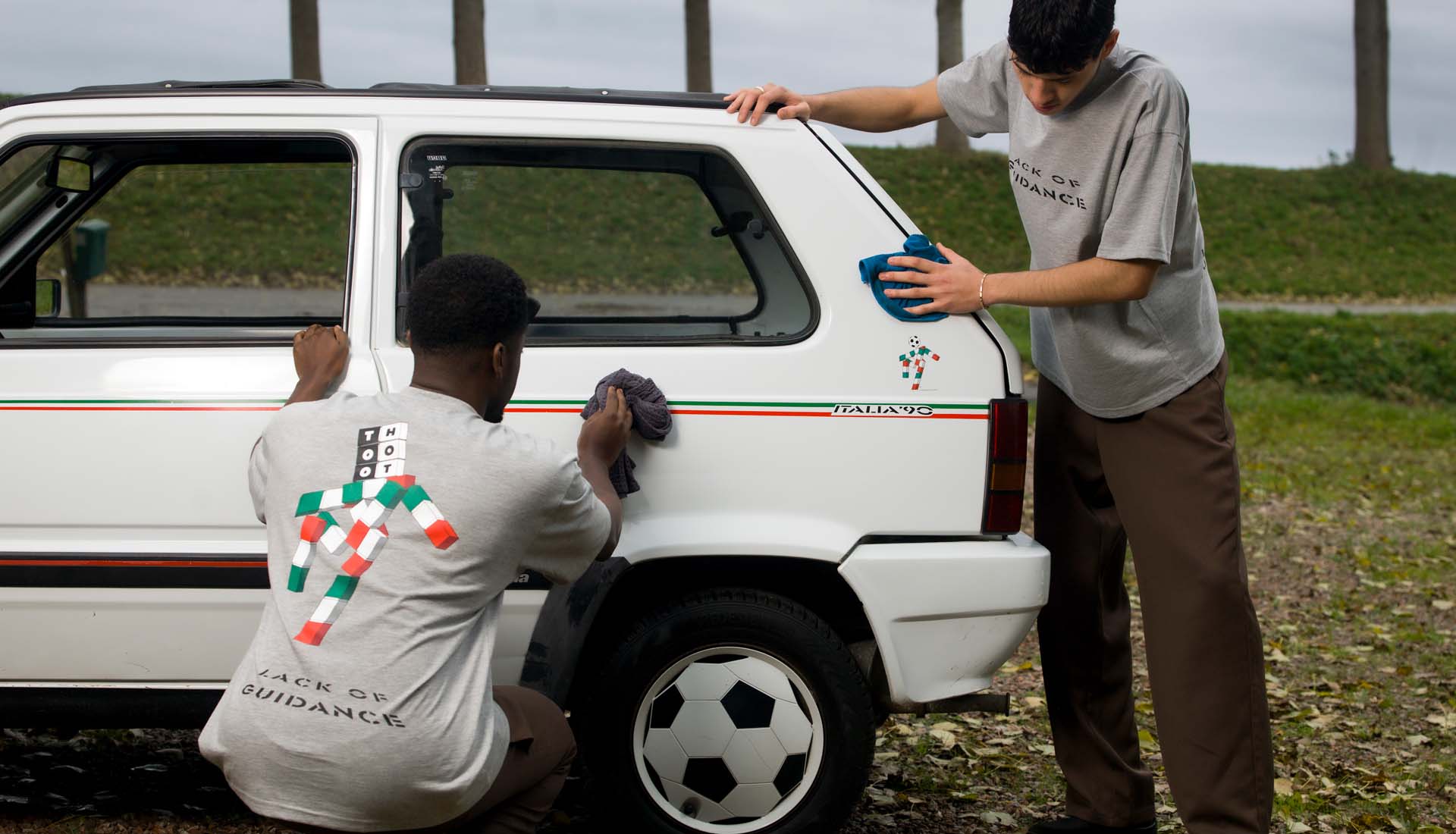 The collection is comprised of short sleeve and long sleeve t-shirts of various designs, drenched in the nostalgia driven logos, block colourings and, of course, a revamped version of ‘Ciao’, the tournament’s mascot, all combined with the present branding of both Lack of Guidance and Too Hot. Shot around the iconic Fiat Panda Italia 90 edition, this collaboration celebrates all the sentimental footnotes listed above, but also the debt England owes to Italia '90 in making football such a unifying and positive force in the country today.