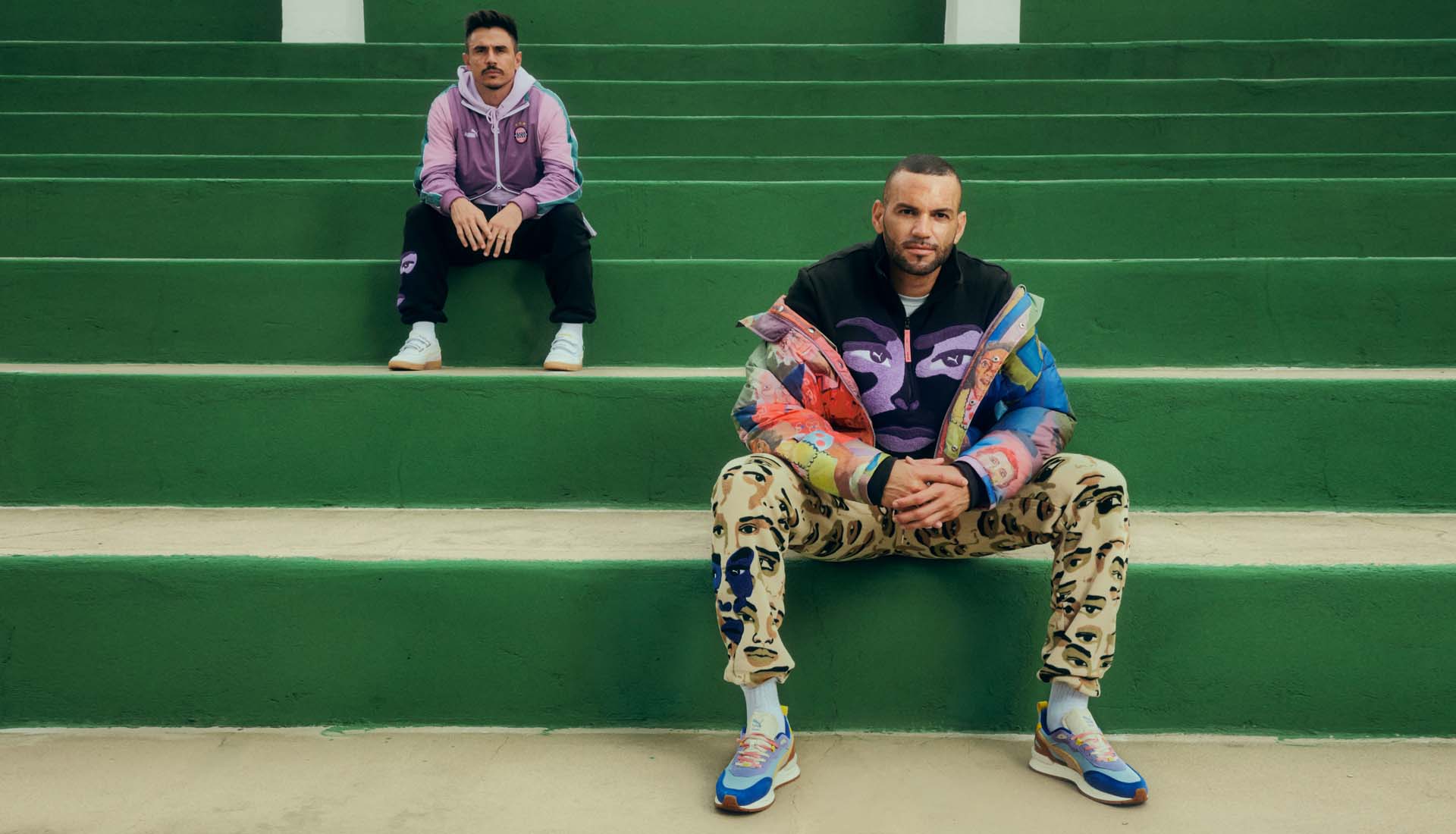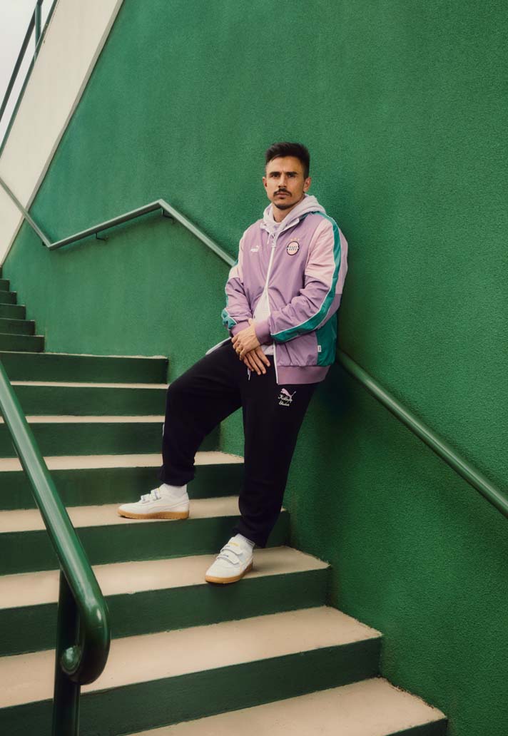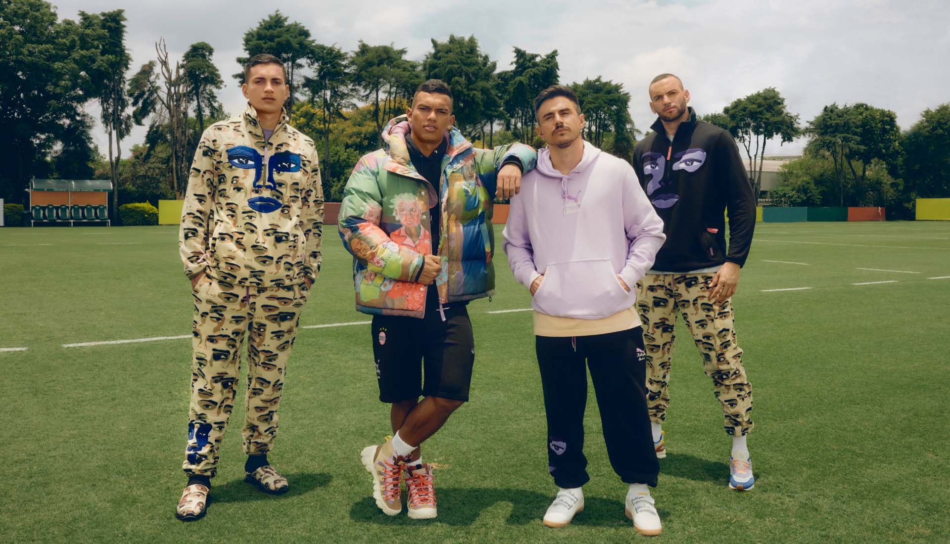 The PUMA x KidSuper Studios second collaboration boasts mix-and-match design elements, experimental prints, and challenges the conventional look of a sneaker. Inspired by Dillane's unbridled love of football, campaign images were shot with his favourite team and recent Copa Libertadores champions, Brazilian club Palmeiras. PUMA sponsored athletes William, Gabriel Veron, Weverton and Renan serve as the models for the collection.