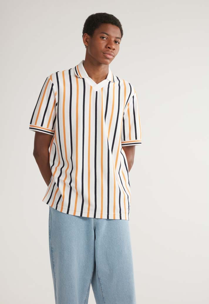 Referencing the kits of the 90s made famous by the likes of Ruud Gullit, vertical stripes and ribbed collars maintain the right balance of modern retro.