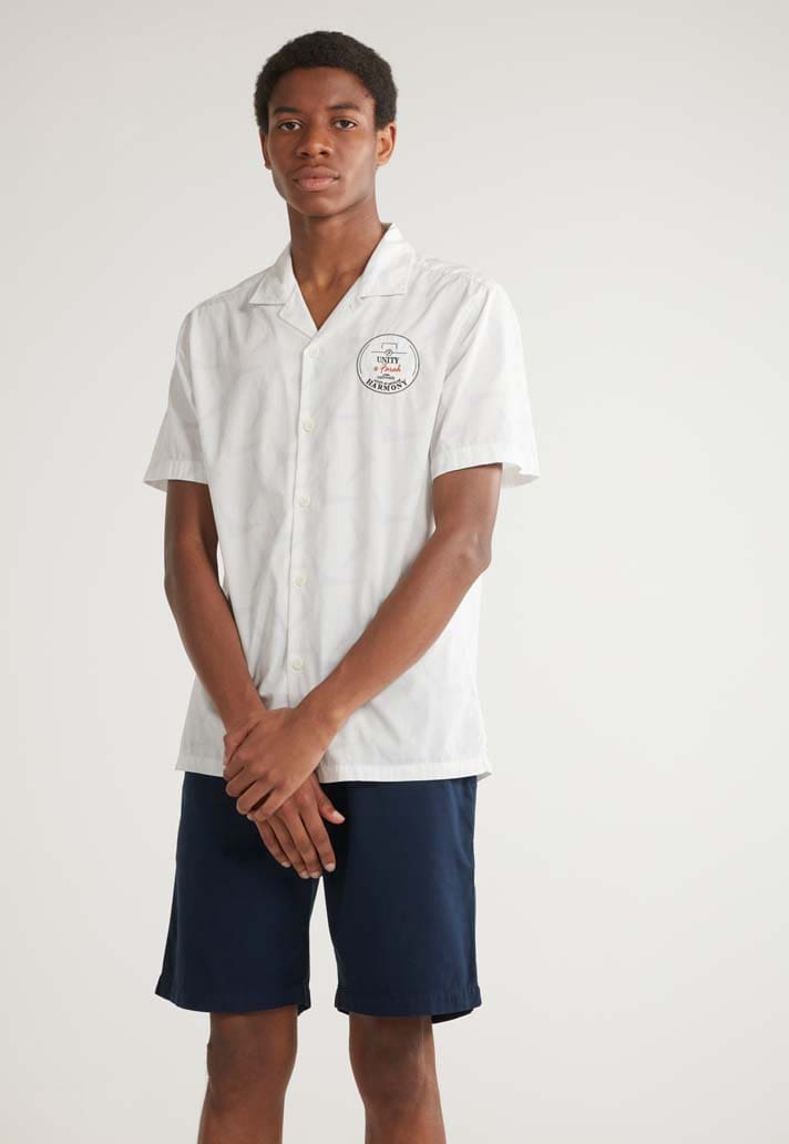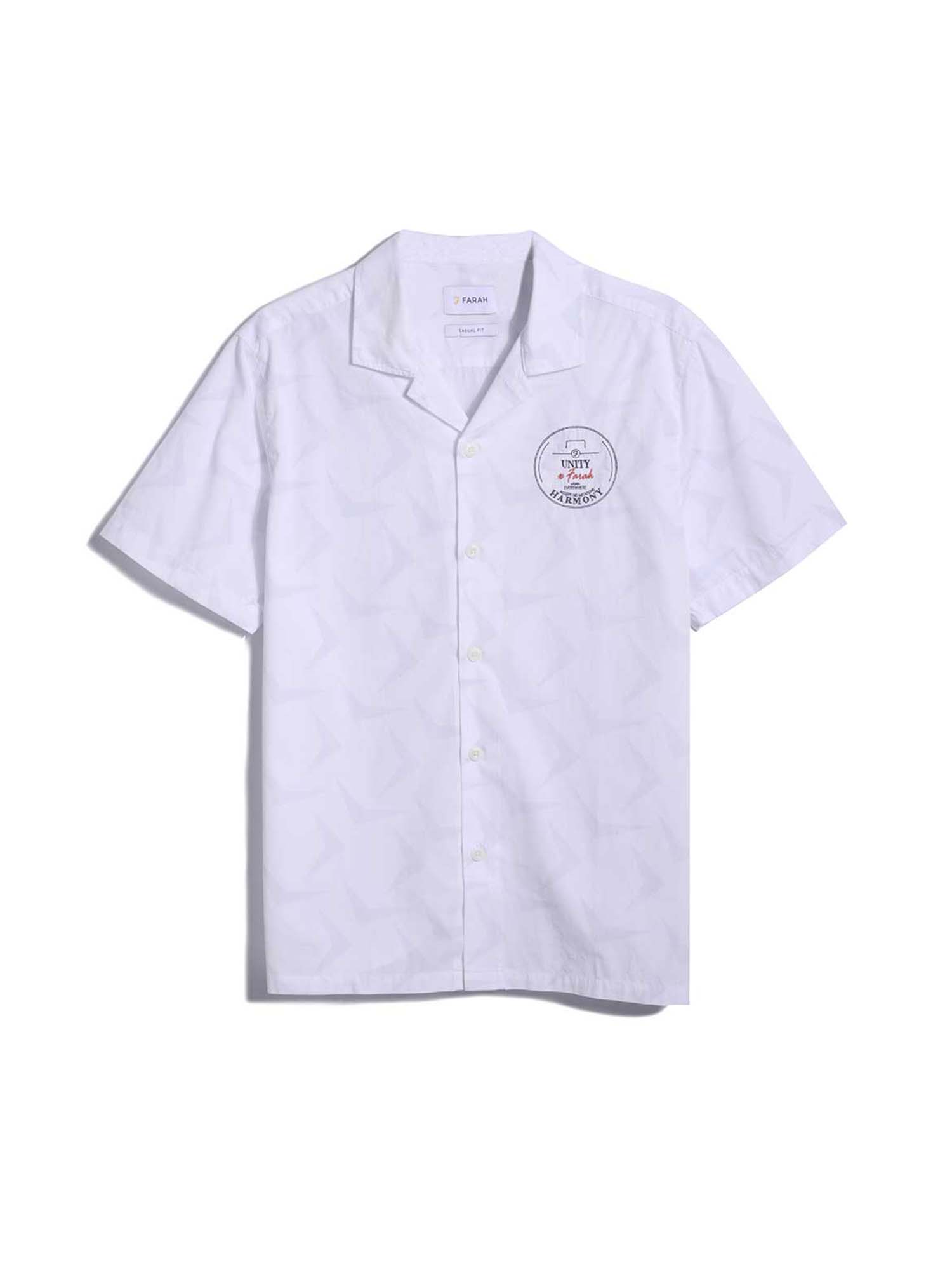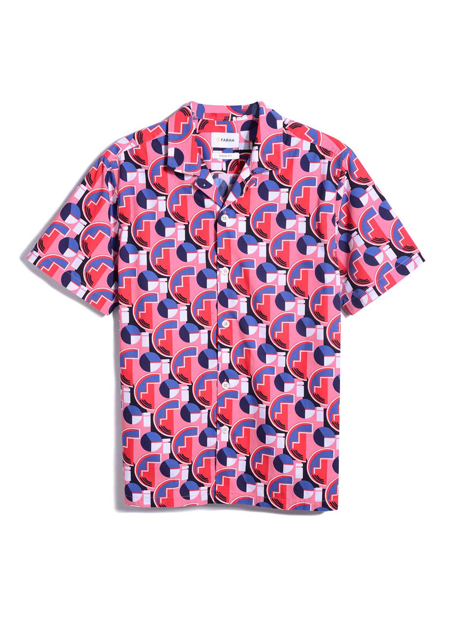 Inspired by the graphic carpets and bold decor of a traditional English pub, this revere collar shirt features a striking all-over print.