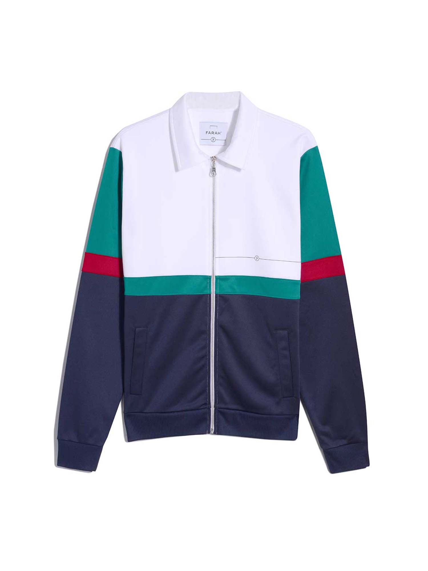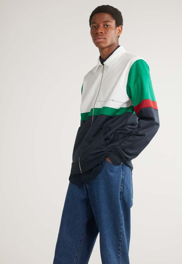 The fusing of their iconic flag colours of red, white and green together with bold lines born from the Modernist movement, inspire this colour-block track top.