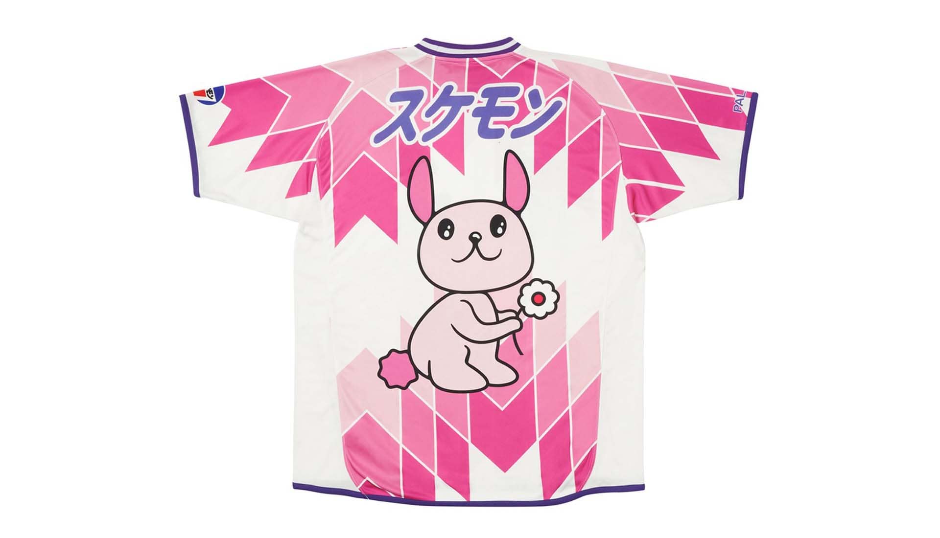 Continuing its sporty focus that the brand have been renowned for in recent years, the Palace Summer 21 collection features a number of football-inspired pieces, most notably in three colourful jersey designs. The first sees a blue base with a central stripe design and white embellishments, the overall feel of which would not be out of place on the streets of Naples. Then there’s the pink diamond and chevron graphic that overlays the white base on the second design, finished off with purple pops on the collar and cuff. And lastly there’s the orange chequered design of the third. All three feature a Japanese anime-influence, notable by the presence of a particular bunny character on the back.