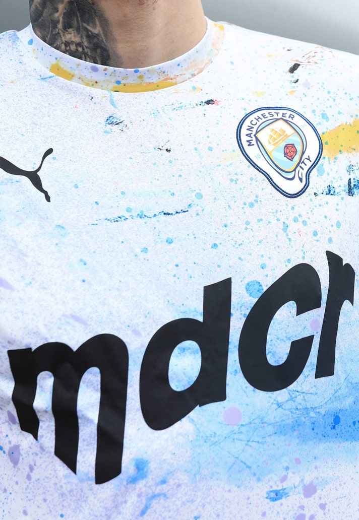 The ‘Madchester’ collection includes a custom MCFC x MDCR Graphic Jersey, MCFC x MDCR Graphic and Logo Tees, as well as MCFC x MDCR Crews, Hoodies, Jacket, Shorts and Pants.