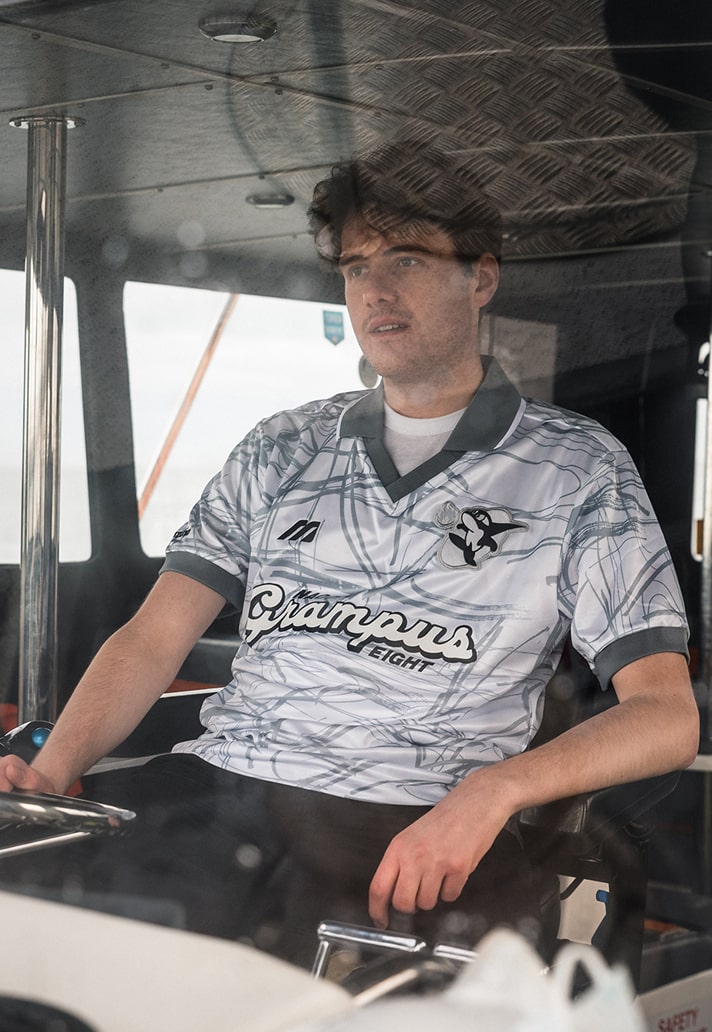 The Mizuno x Nagoya Grampus project has seen the club’s ’93 jersey brought sharply back into focus, with the Japanese brand offering up a faithfully recreated rerelease as part of the Heritage Collection before also allowing us at SoccerBible to put our own contemporary spin on the design with help from Fokohaela. Now it’s the turn of HANON, who take inspiration from the club’s dolphin. See, Nagoya Grampus’s name was derived from the two most prominent symbols of Nagoya: the two golden Grampus dolphins on the top of Nagoya Castle, and the Maru-Hachi (Circle eight), the city’s official symbol. Also known as the Risso’s dolphin, this species can be seen off the coast in Scotland, which just so happens to be the home of HANON.