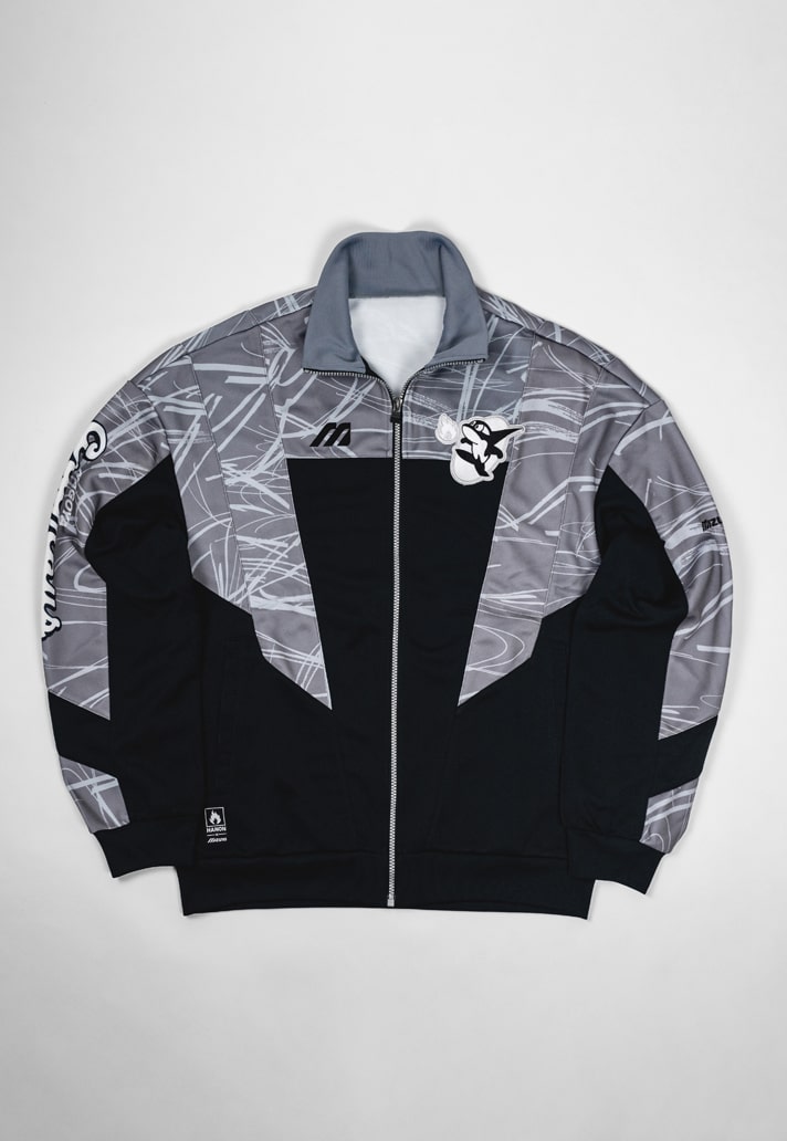 To complement their take on the ‘93 Jersey, HANON have also reworked Nagoya’s ‘93 Track Jacket, which features the same iconic geometric design as the original. Taking the same elements from the jersey, a dark grey base has been applied with light grey markings to the top half, contrasted by a black bottom half. The track jacket features a full-length metal zip, two side pockets, ribbed collar and cuffs, while branding details remain the same, except the Nagoya Grampus Eight logo, which is applied to the right sleeve.