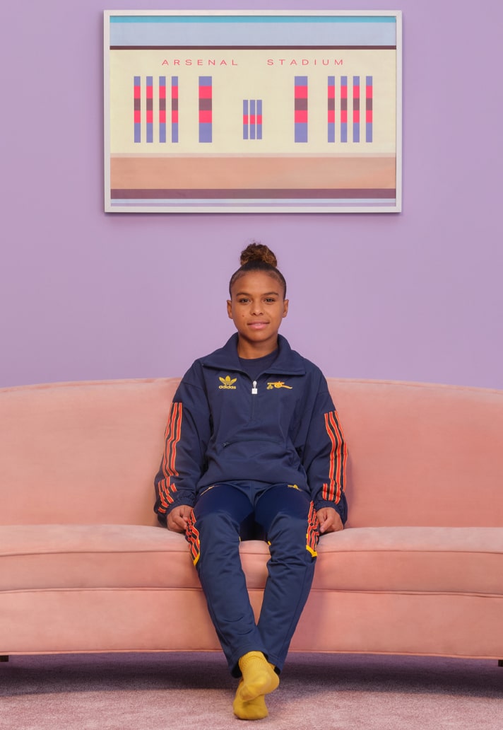 The collection will be worn by the Arsenal women’s and men’s team in the build up to four fixtures between 9 – 15 December including the Arsenal Women’s UWCL match v Barcelona on 9 December, where the team will walk out wearing the zipped jacket.