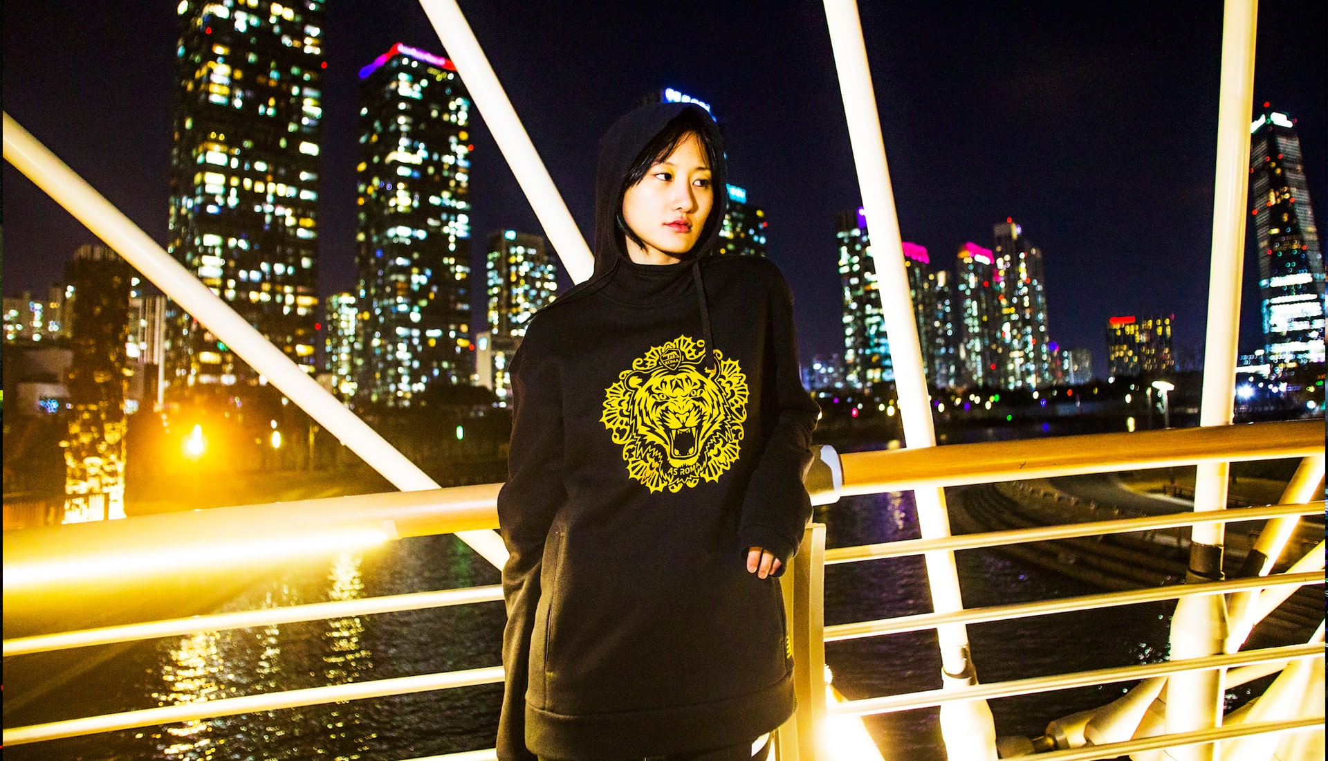 The collection is rounded out by a cap, bobble hat and scarf, each embellished with a golden tiger print in recognition of the holiday.