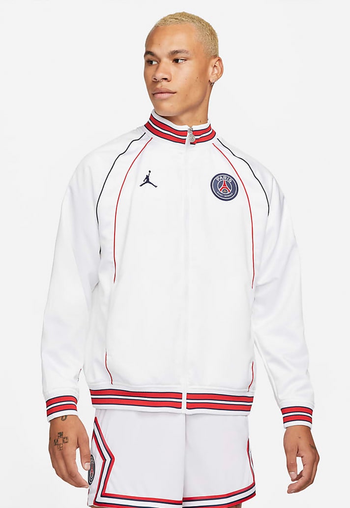 Striding back onto the scene for a second dose of collaborative cool, PSG and Jordan dropped the club’s new fourth kit recently, and it came in a clean white look, trimmed with suitable style inspired by the famous uniforms of the Chicago Bulls team, bringing classic basketball iconography to the pitch. And the look has been carried forward and expanded out for the full performance and lifestyle range.