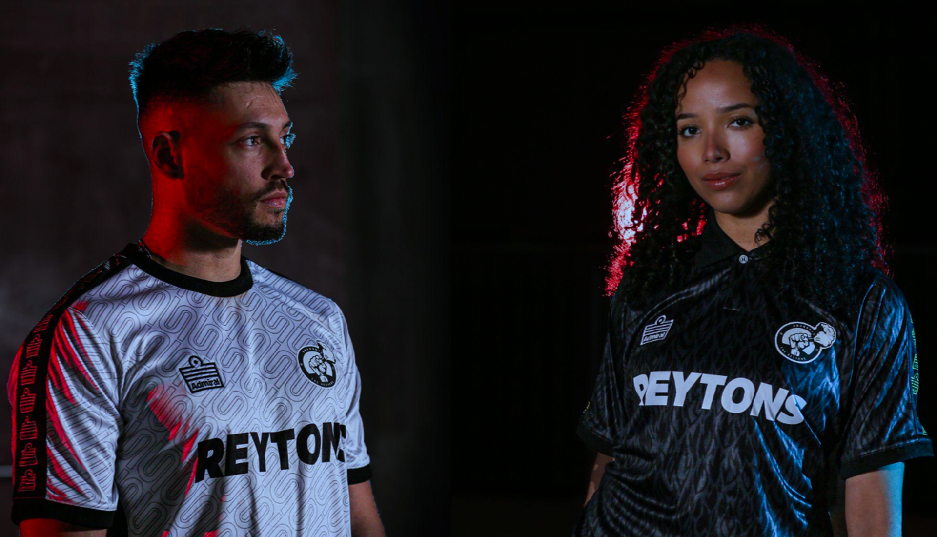 The ‘2022 Steel City Kits’ sees a home and away shirt, offering fans a dedicated way to show their support. The home shirt arrives in lighter tones, with a design that’s influenced by the British steel emblem. It sees a unique sublimated graphic repeat across the whole shirt, with black elements bordering the piece. The away shirt then focuses on the forge itself, with an all over tone-on-tone flame print offering a perfect football meets fashion piece. Both shirts feature the word “REYTONS” in the sponsor slot and the specially created club crest, while the Admiral logo stylishly rides down the shoulders of each in a banded execution, standing out on the away shirt all the more in a vibrant yellow.