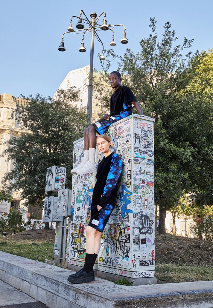 The second limited edition collection once again stands out for the quality of materials used, excellent fit and high production standards. Comprising a short-sleeve t-shirt, long-sleeve t-shirt, hoodie and pair of shorts, the modern style of the garments are further enhanced through the use of high thread-count jersey fabric, offering superior comfort and durability. With their tailored construction, the items feature tie-dye effect inlay panels in blue and black, while the signature ‘Made in Milano’ label can be found on both front and back.