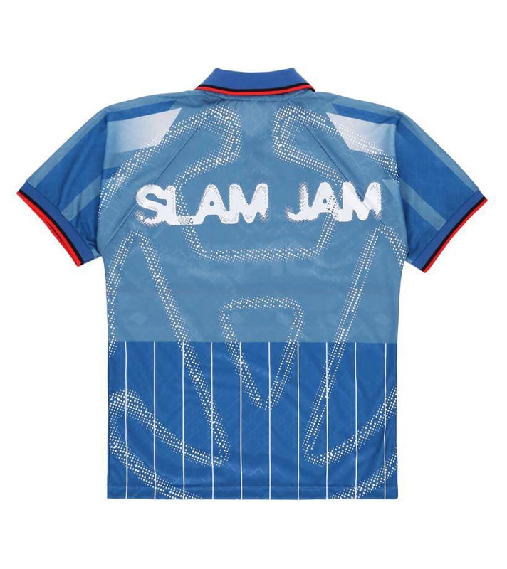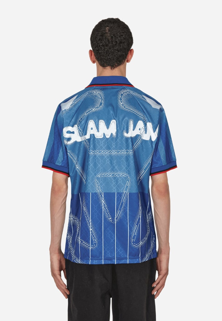 Flash forward, and now streetwear label Slam Jam have raided the Milan archives to pull out the jersey, dusting it down and putting their own stamp on it. Taking the original silhouette, complete with blue base colour, the jersey features a Slam Jam original all-over screenprint on the back, along with a re-invented Rossoneri devil illustration, recalling past legendary moments from the club's history.