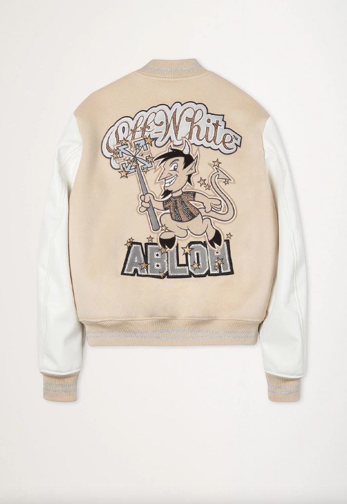 The AC Milan x Off-White varsity jacket will be available from 11 October to 23 October only on off---white.com with a portion of proceeds donated to Fondazione Milan, AC Milan's charity foundation.
