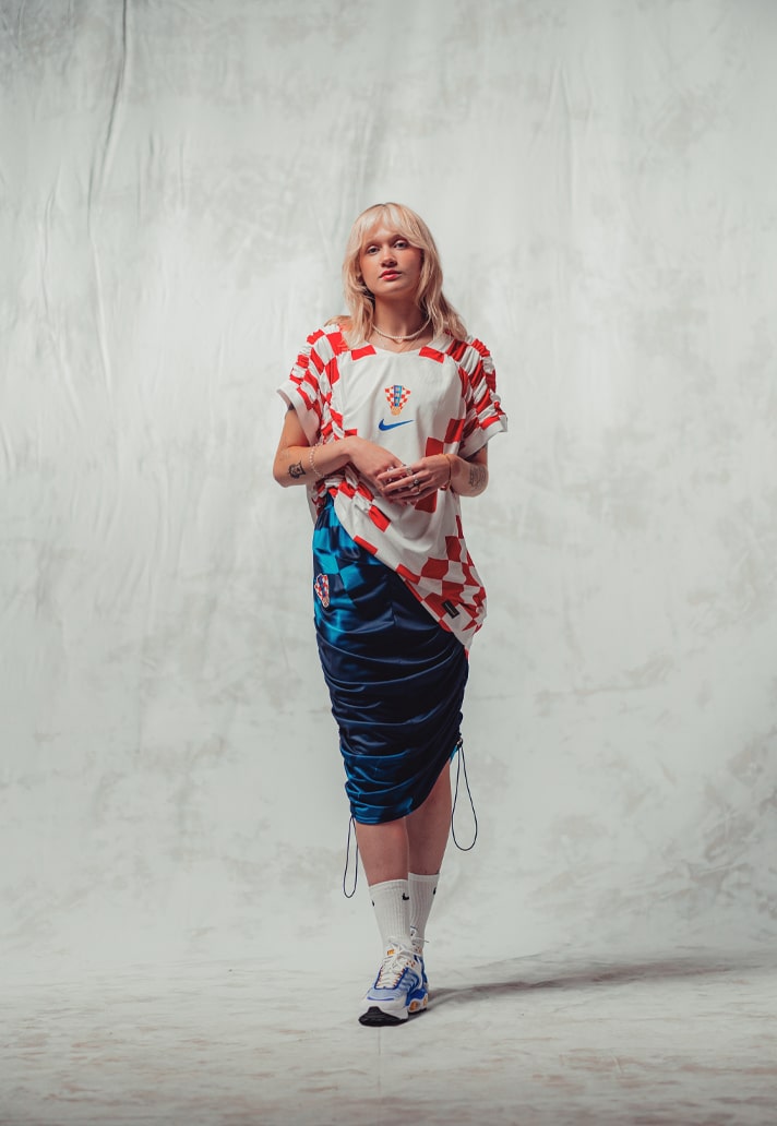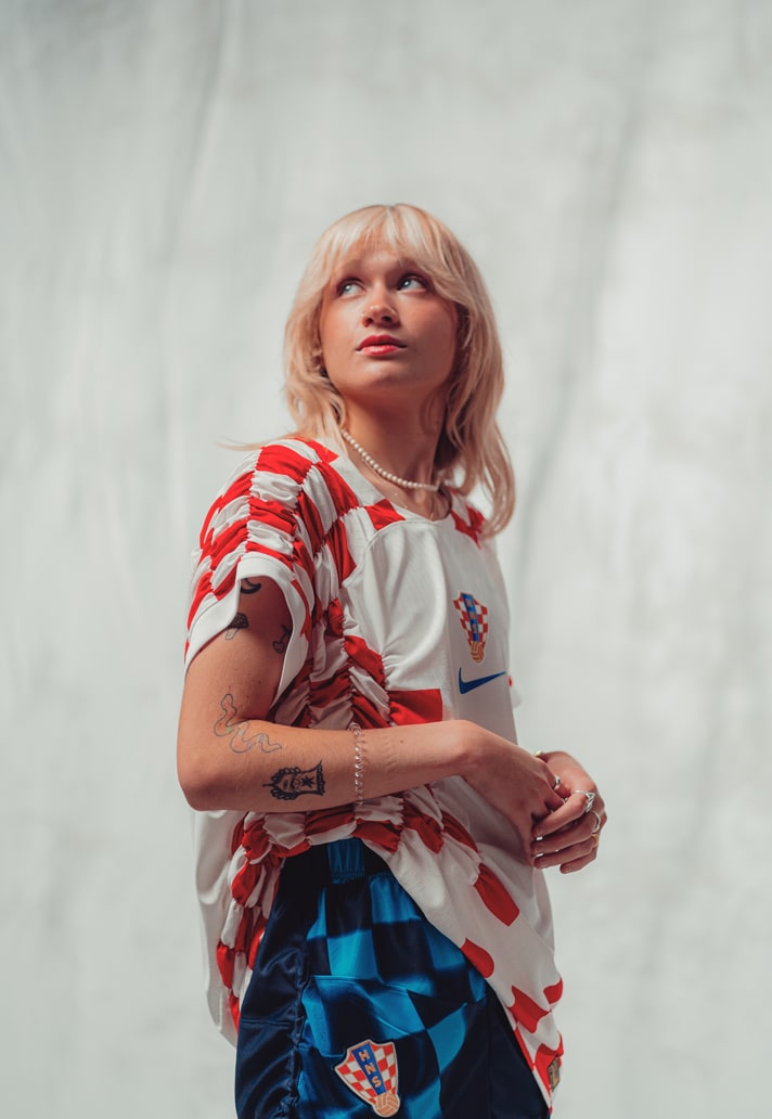 “We wanted the collection to have a fresh, playful, feel,” explained [A O F] designer Nicole Kaminska. “The aim of the designs is to celebrate the emotions around the game and the fans all around the world. Each of the looks can be styled and adjusted in various ways, making the pieces unique to the wearer.”