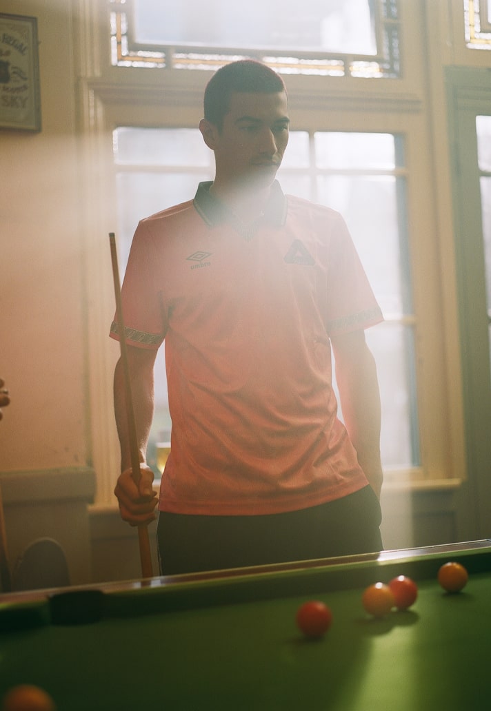England have had many iconic kits over the years, but no sets resonate quite as well as that of the Three Lions’ wardrobe for Italia ’90, which hit all the right notes and now exist as timeless pieces that encapsulate a generation of football. So it’s no surprise that the base design is so often drawn upon as inspiration, and sure enough, that’s where Palace Skateboards glided to for their latest collaboration with Umbro, creating a small and perfectly formed pitch/pub-ready line of football tops in various glorious colours, rounded out with a drill top and shorts.