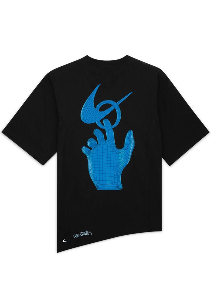 The prime piece of this mini capsule is the goalkeeper jersey, which comes with a unique sublimated wood grain pattern, combined and presented in blue tones to reference the “Swimming Man” logo that appears on the chest. Elbow pads feature on the sleeves and spell out “Nike” for a nice flourish. The collection then features two pairs of woven shorts that are engineered with a lightweight, water-resistant ripstop fabric, boasting exterior laces and utility pouches for storage. Completing the collection are two tees that are asymmetrical at the bottom and feature bold blue Off-White and Nike graphics on the front and back.
