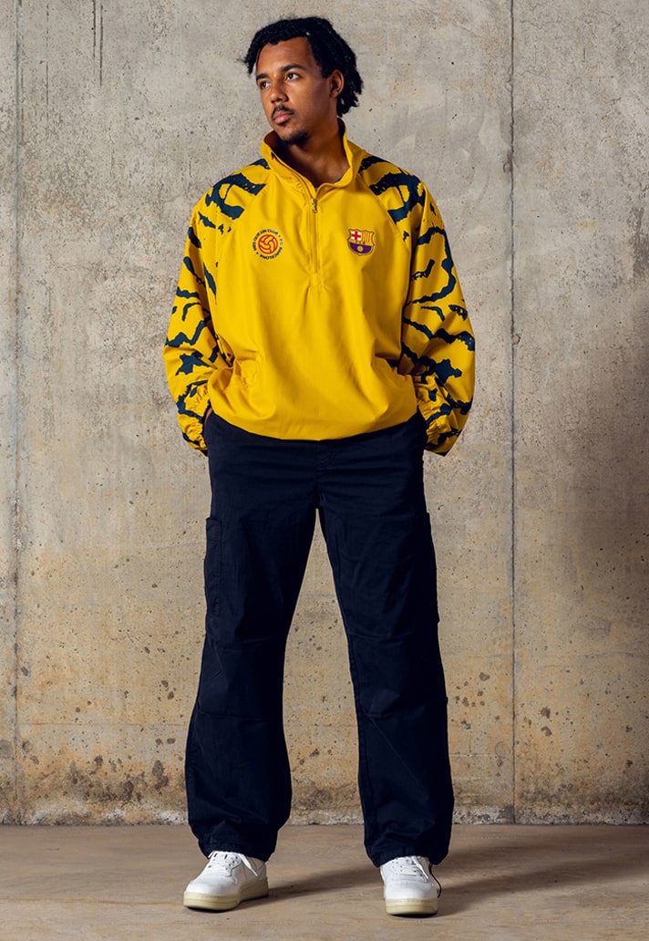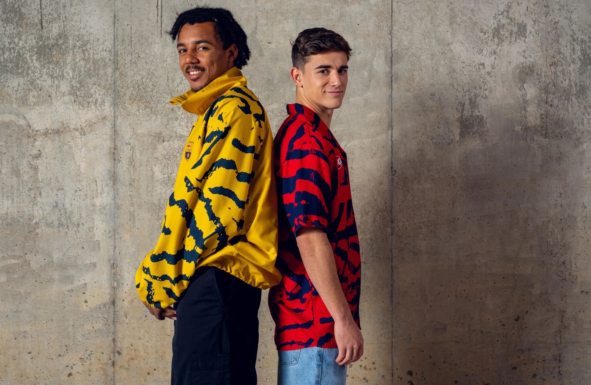 Barcelona’s influence stretches so far beyond the pitch, and whilst Nike supply their on-pitch performance attire, they’ve recently commenced a new official formal wear partnership with Italian fashion company Herno, who make sure both the men’s and women’s sides are looking dapper when they’re on the road. But now the Catalan side are branching out on their own with the summer-ready ‘Barça Fest collection’, which sees some bright and bold shapes spread across a range of silhouettes.