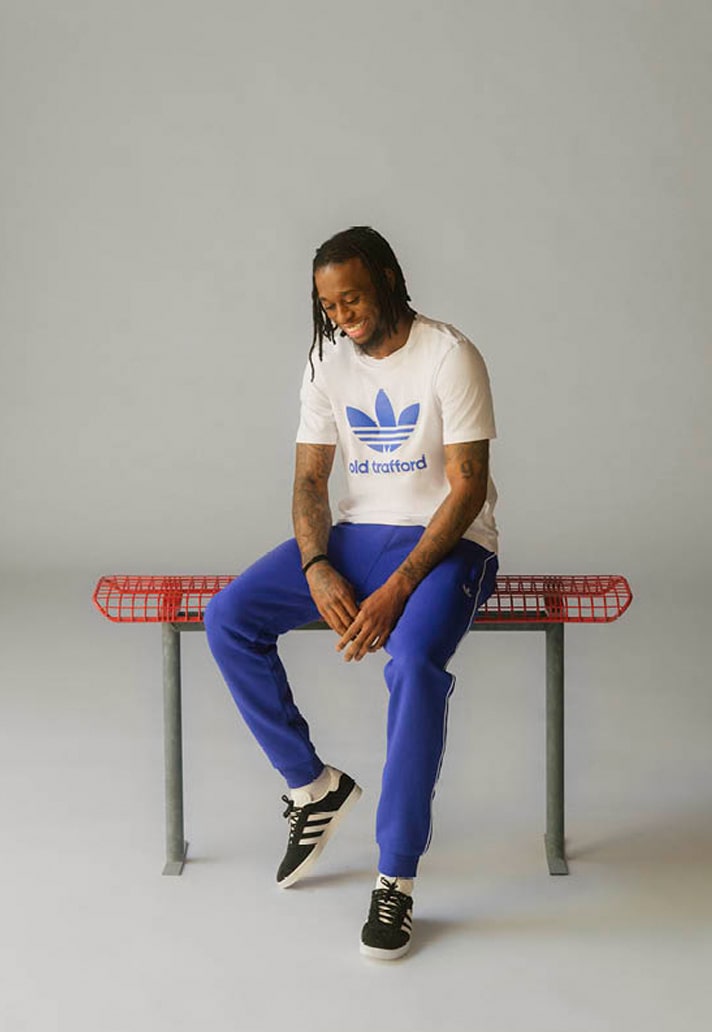 The hero of the collection is the Man Utd x Originals Third jersey, which is inspired by the same legendary kit worn at that time. This includes an engineered “MUFC” jacquard material and a meticulously crafted ribbed collar with red and black detailing on the edges. Mirroring the original, the adidas Trefoil, the club’s crest and wider sponsor iconography of the time, are all raised via a soft textured material applied onto the core fabric of the jersey. Complementing the shirt, matching shorts – adorned with ‘MUFC’ script on the side – come finished in a woven fabric to recreate both the look and feel of those worn decades ago.