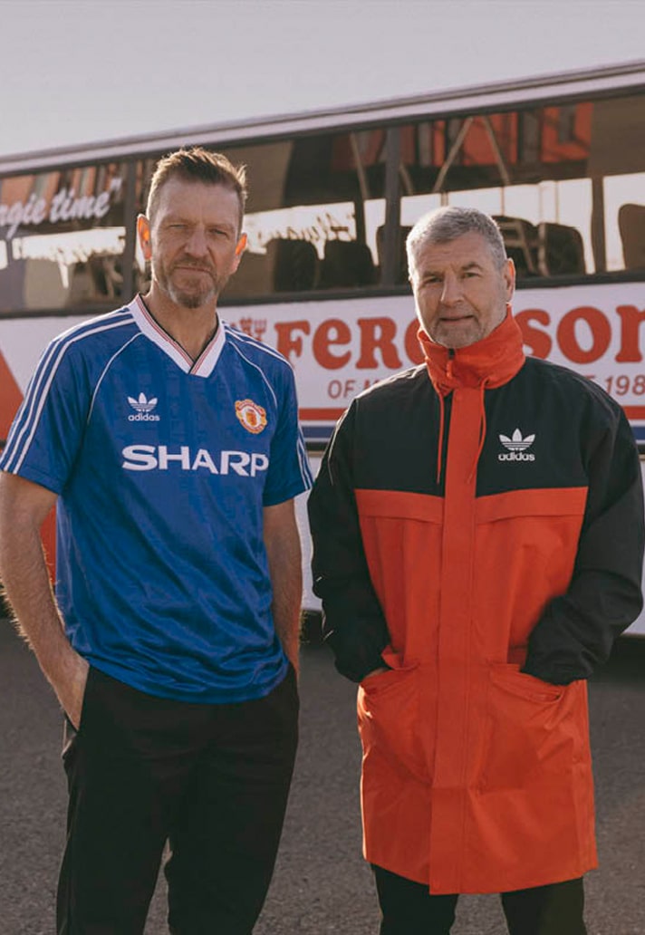 While the club chase Champions League football on the pitch, Adidas and Manchester United take a beat to rewind the clock to the 88-90 era, reimagining pieces worn by fans as they followed the club to away games during this iconic era.
