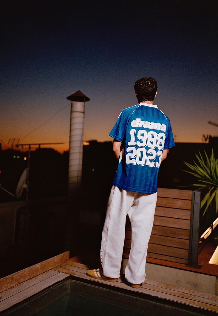Now we get to see what the hype is all about. It’s assumed that the collaboration would bring a collection of co-branded items that leant into Drama Call’s skater heritage, but what we get here is a single item – albeit a very good look at it. The jersey looks to be a fairly faithful recreation of the 1988 third shirt, much like what arrived as part of the latest Man United x Originals collection, but the design is then elevated by Drama Call branding on the right side of the shirt, while the opposite side is then hit with Drama’s sparkle detailing, a graphic seen consistently across the imprint’s tracksuit and T-shirt designs. The design is finished with additional Drama branding on the rear that sits alongside the years 1988 and 2023.
