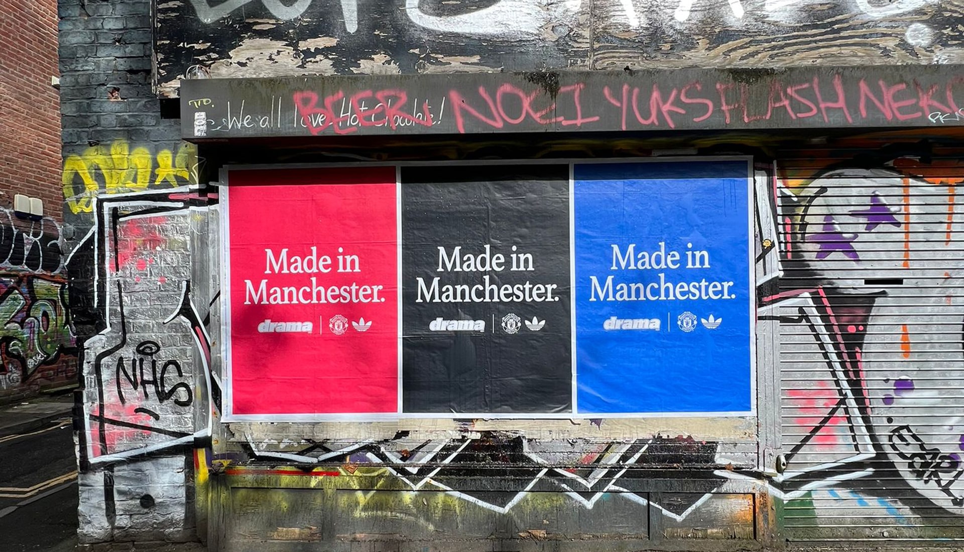Coming on the same day that adidas unveiled their latest retro Man Utd collection, which also featured the Red Devils’ iconic 1988 third kit, Drama Call reveal a collaboration with the Premier League side that’s been being teased over the last week or so. Those teases began with some dual branded posters appearing around the city, and it was followed up by a tease video on the streetwear label’s social channels.