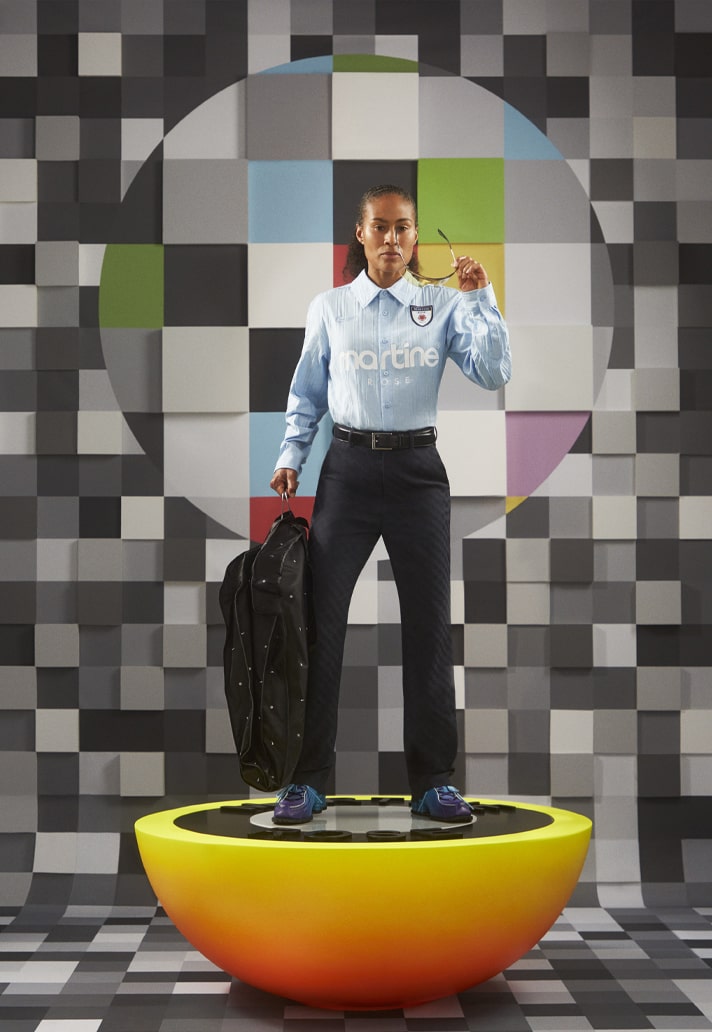 In her latest partnership with Nike, designer Martine Rose dissolves the boundaries of men and women’s football styling with gender-free tailored pieces that evolve player suiting and expand the culture of sport for the next generation.