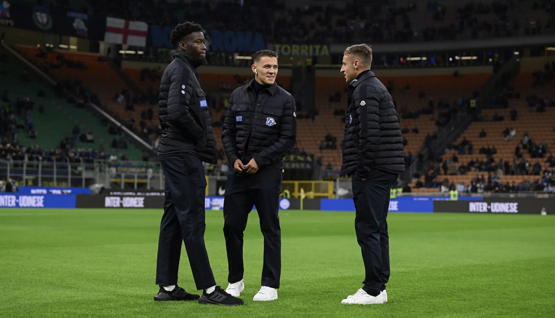 Ahead of the game against Roma at the San Siro this weekend, the Nerazzurri wore the new Inter X Moncler by Arsham jacket for the first time, a limited edition line created by New York artist Daniel Arsham.